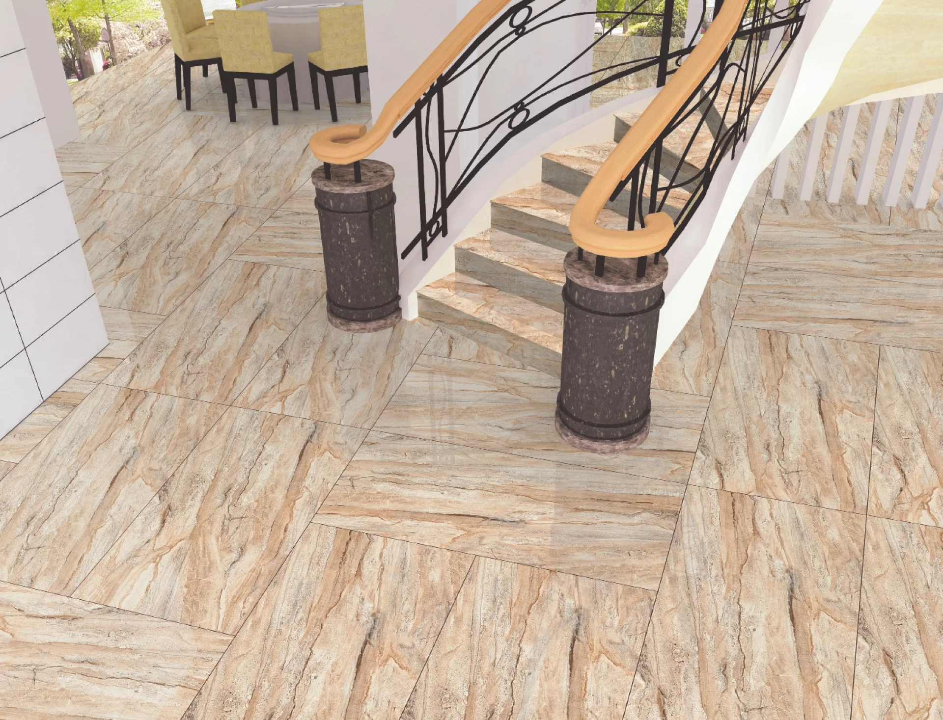 Modelul natural redat prin tehnologia Inkjet Nano reproduce fidel aspectul natural al pietrei, cu variații de tonuri de la bej deschis la maro și accente discrete de gri.