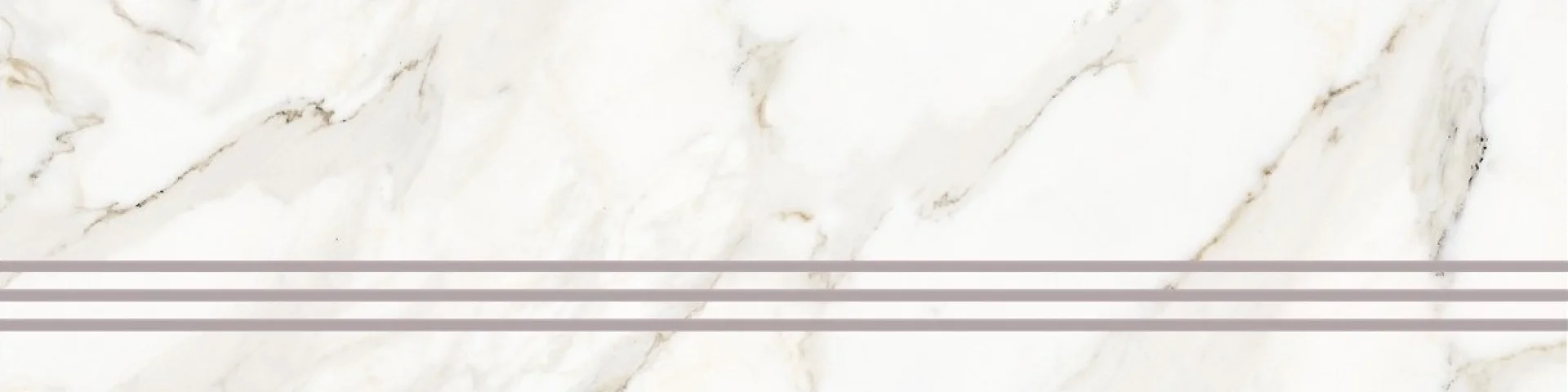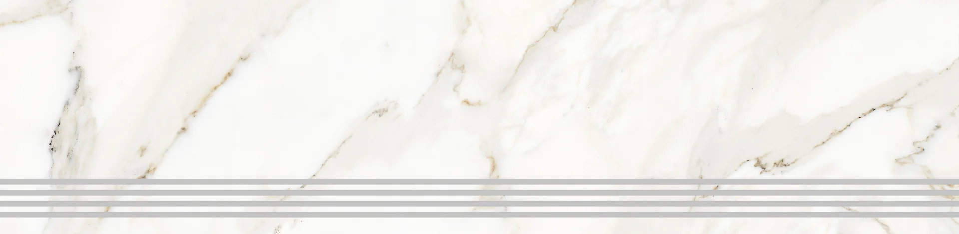 TREAPTA GRESIE SAHARA GREEN - 120X30 cm, portelanata, glazurata, lucioasa, rectificata, interior-exterior, aspect de marmura alba cu insertii crem si maronii.