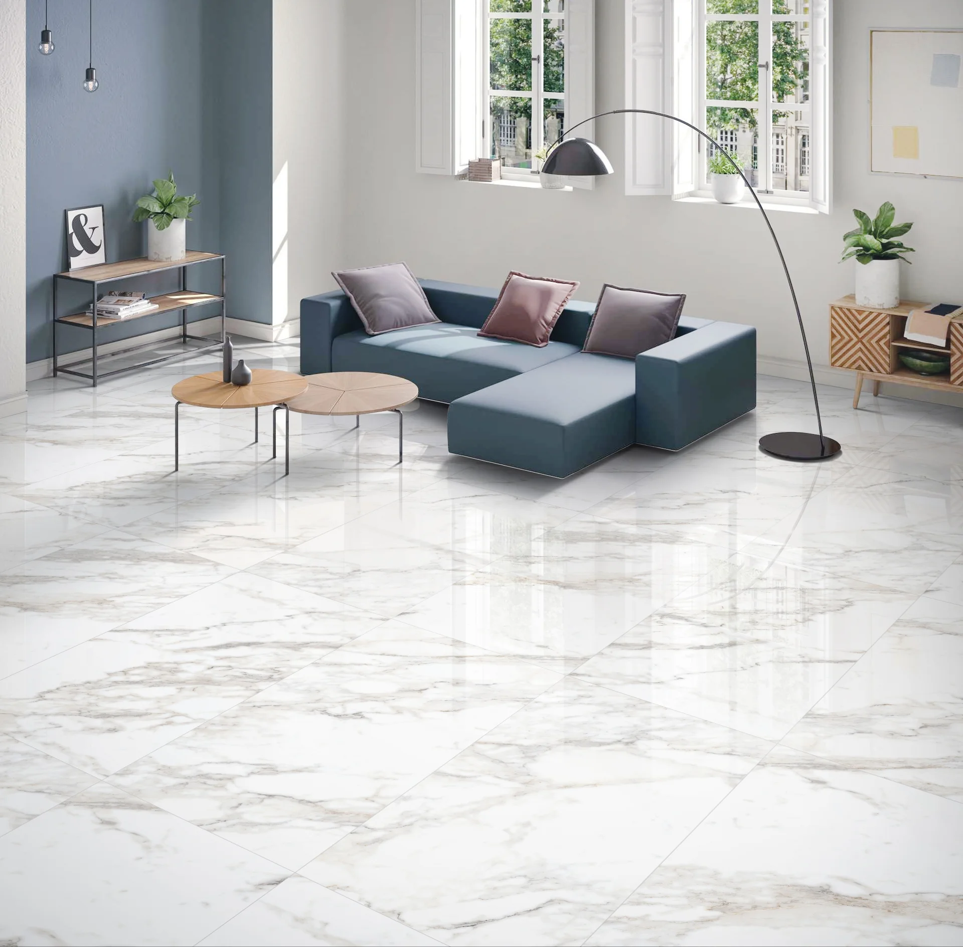 GRESIE CALACATTA NATURAL GRANDE redă frumusețea autentică a marmurei Calacatta într-o versiune modernă, din porțelan premium.