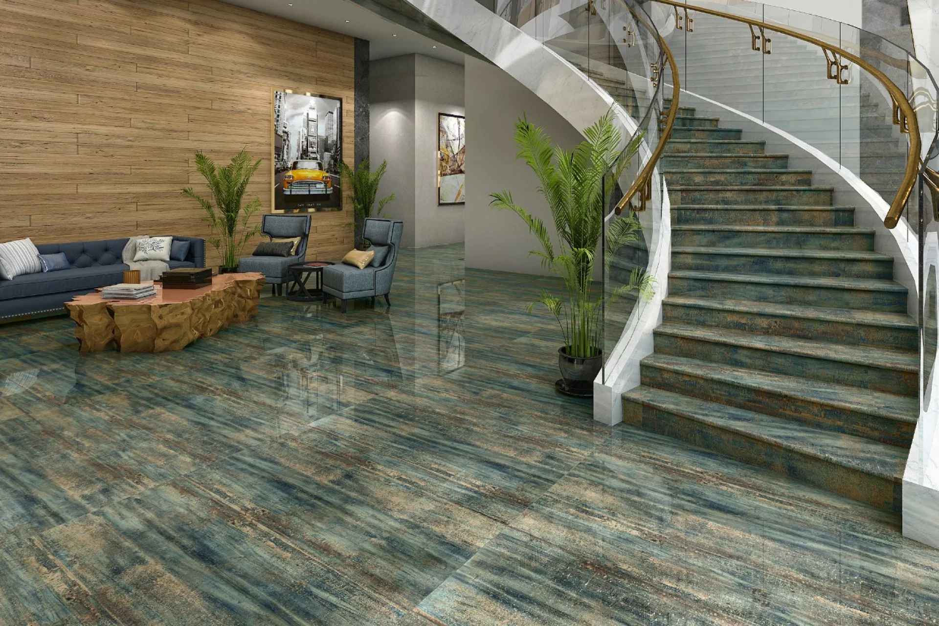 Treapta gresie, portelanata, 30X120 cm, ALIENA, aspect piatra naturala, verde, lucioasa, rectificata