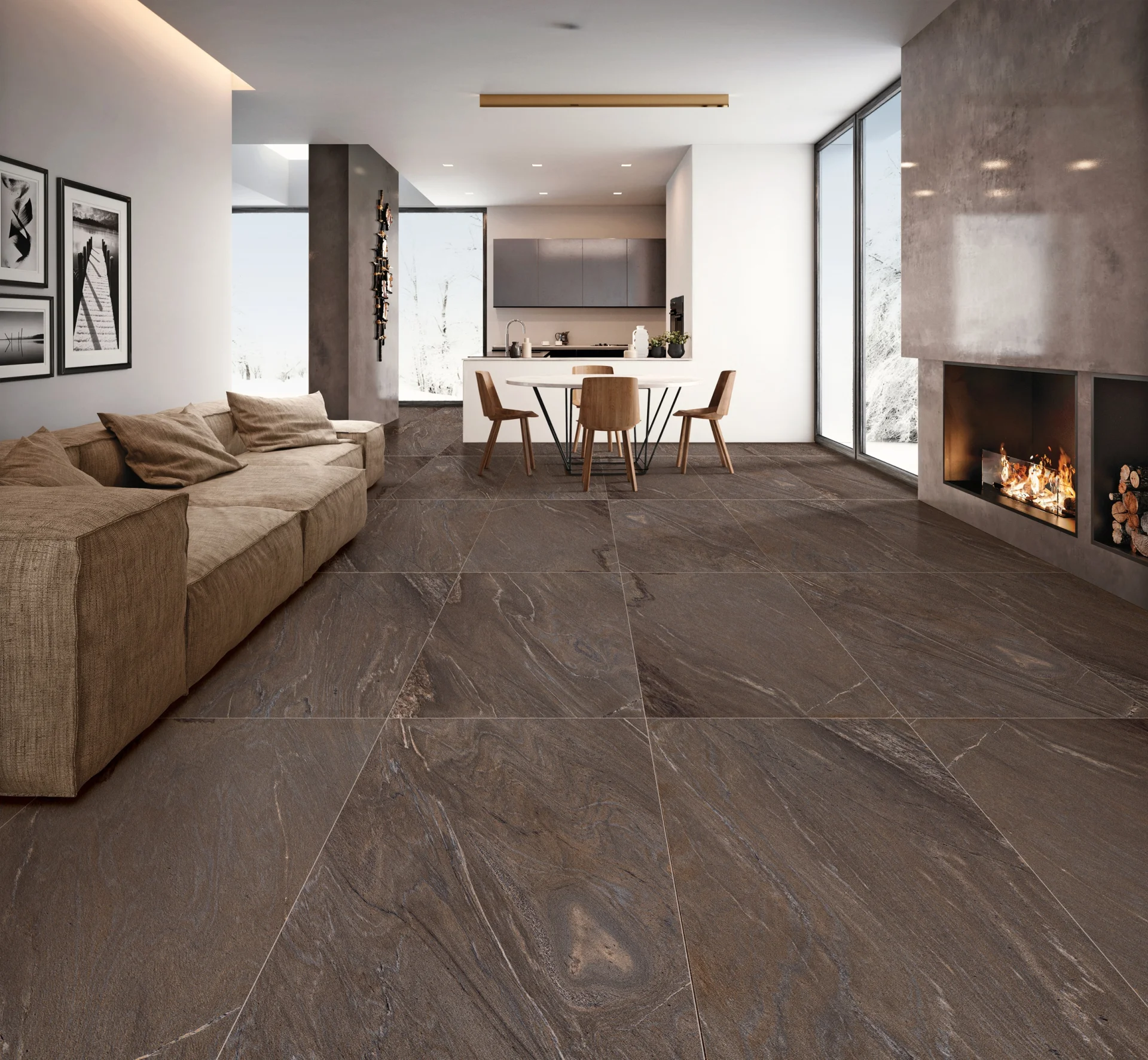 Designul în nuanță maro-ciocolatiu intens, cu accente subtile de gri, creează un efect natural și cald, potrivit atât pentru interioare contemporane, cât și pentru spații exterioare cu un stil autentic.