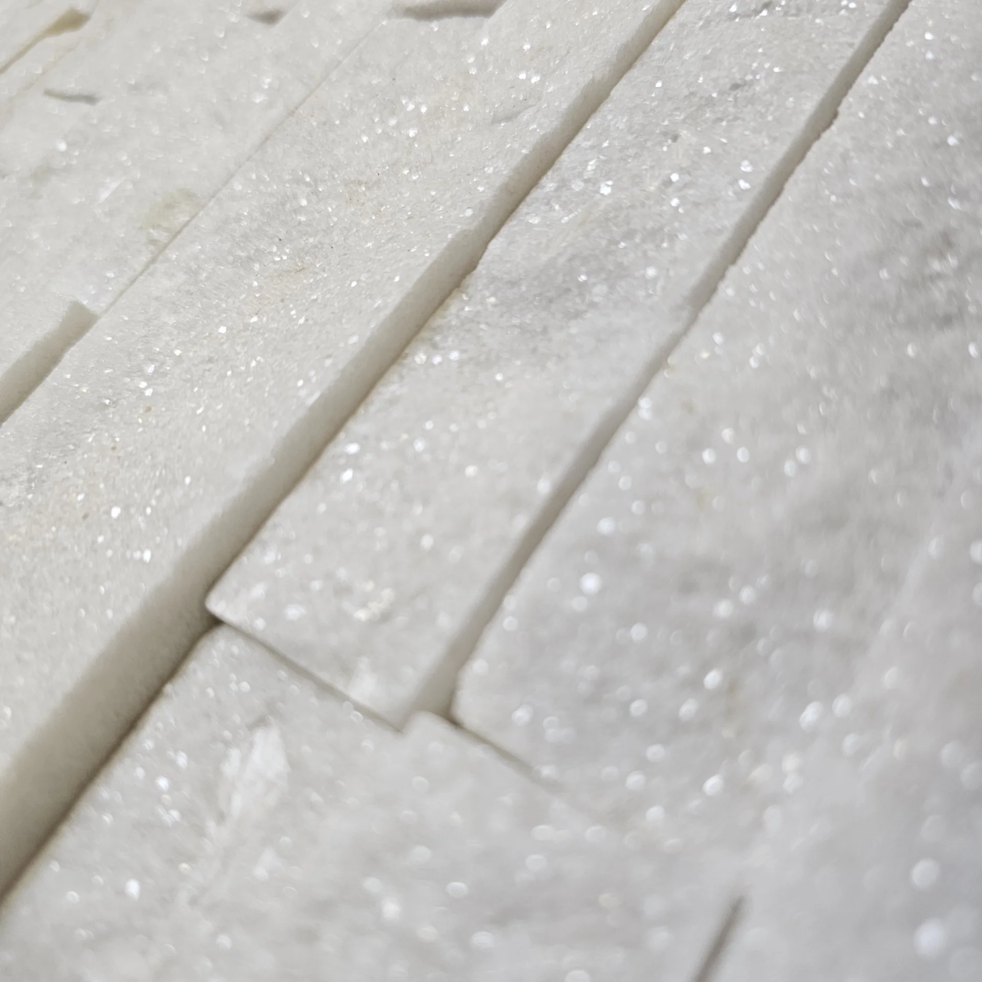 PIATRA NATURALA ZT003 - 15X60 cm, cu finisaj rustic și nuanțe naturale de alb cu cristale stralucitoare. Ideală pentru placări interioare și exterioare.