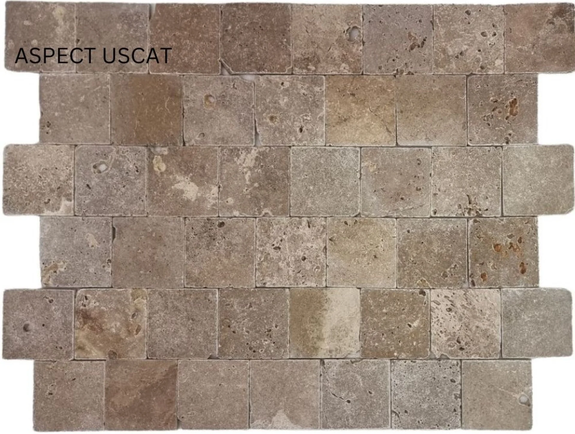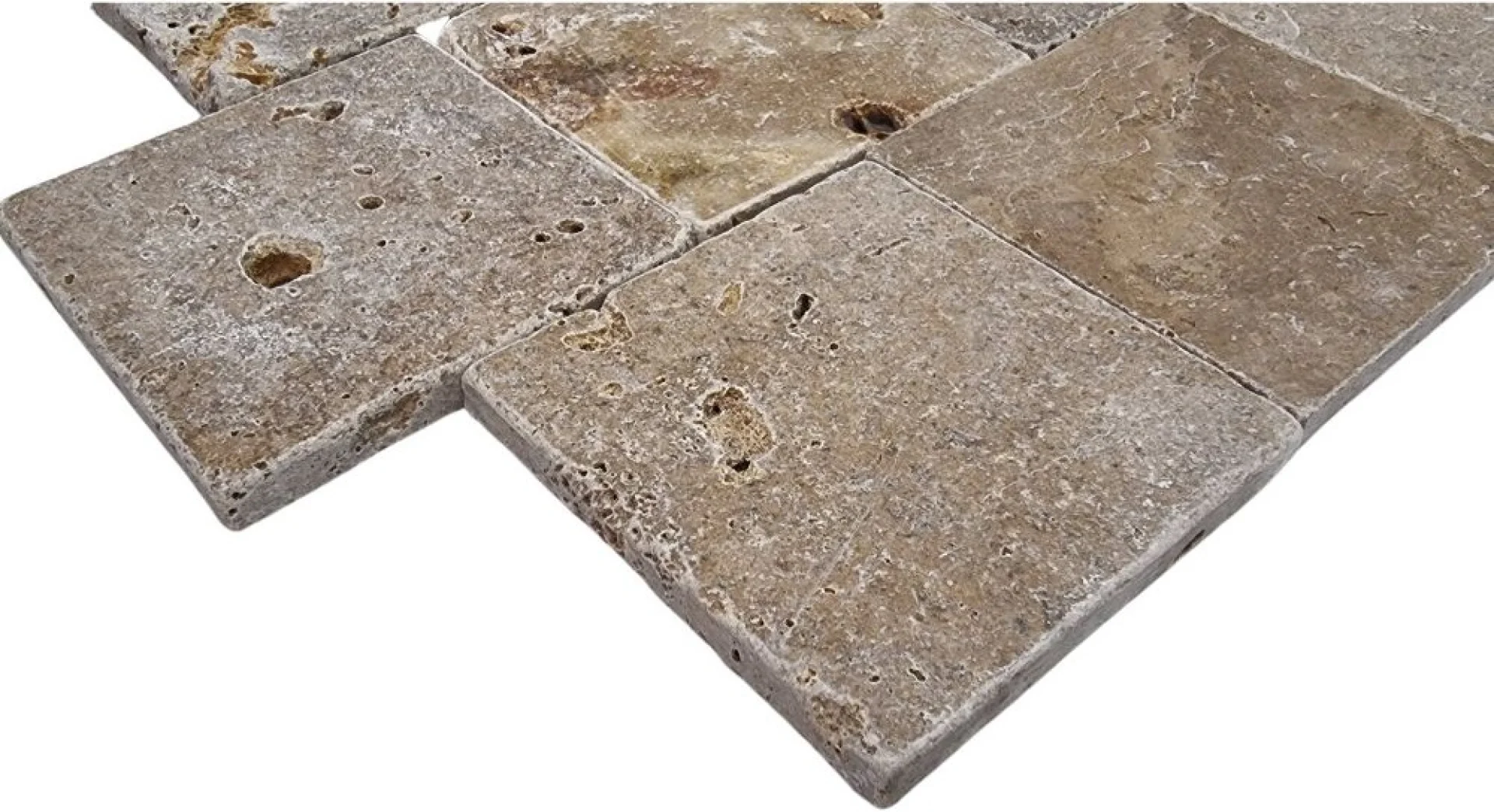 TRAVERTIN NOCHE - 10X10X1 cm cm, finisaj tumbled, cu suprafață nechituită și textură naturala, ideal pentru amenajări interioare și exterioare în stil rustic sau mediteranean.