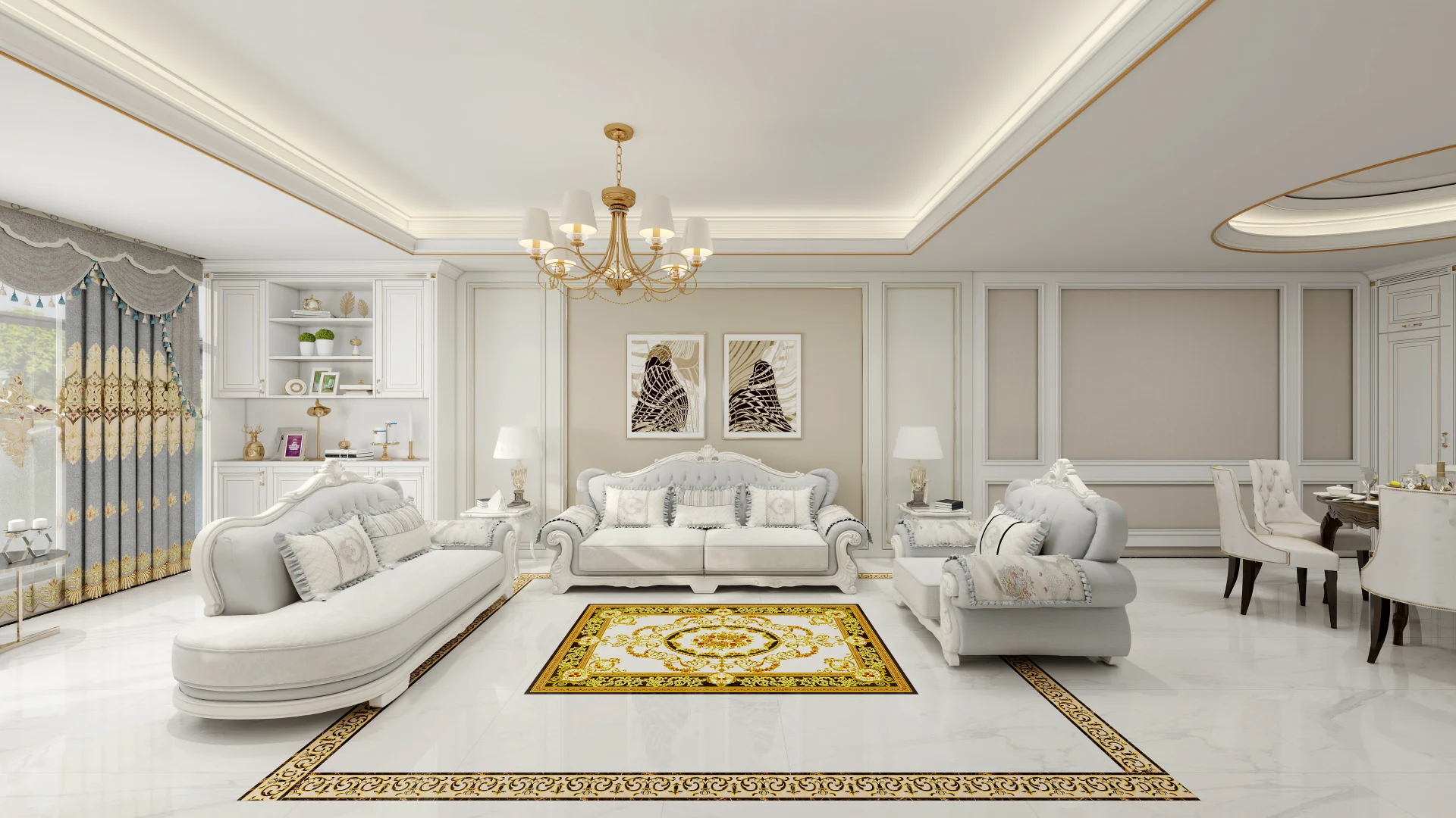Ideal pentru livinguri luxoase, holuri de primire, săli de evenimente, restaurante sau camere în stil clasic și opulent.
