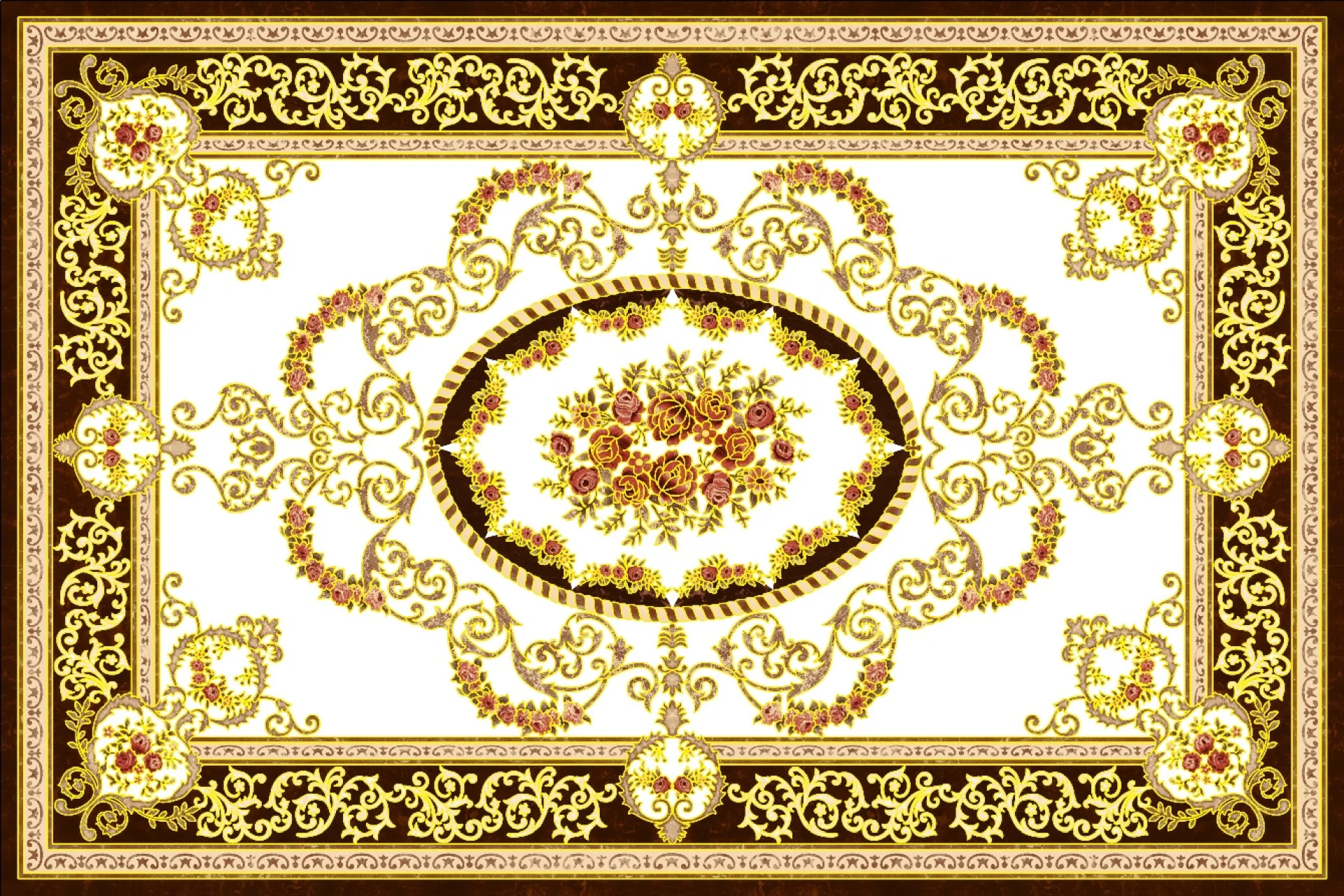 COVOR CERAMIC B11173 (6 PLACI) - 120X180 cm, model floral baroc cu accente aurii și fundal alb, format din 6 plăci portelanate glazurate, lux și rafinament pentru interioare clasice.