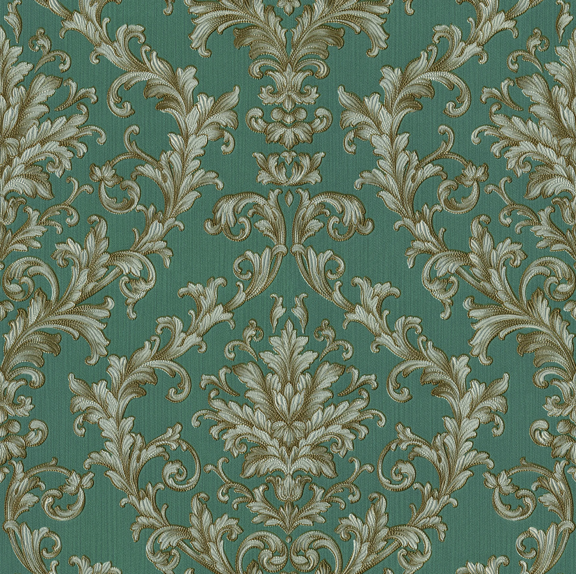Tapetul TALISA 832306 aduce în locuința ta un plus de rafinament prin designul baroc stilizat, realizat în nuanțe sofisticate de verde închis și accente aurii.