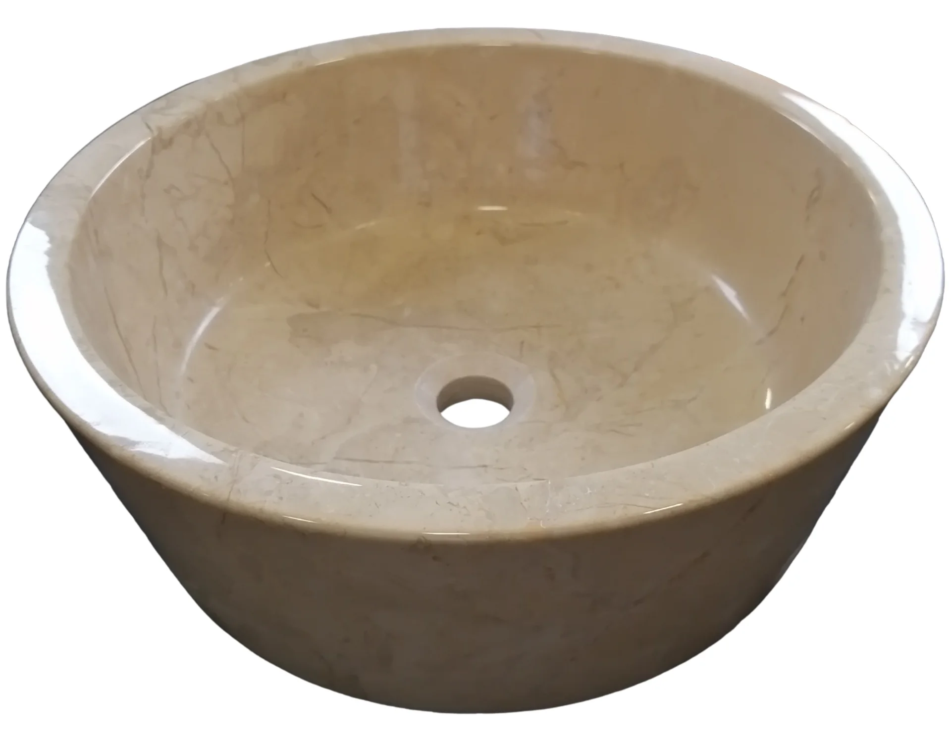 LAVOAR DIN MARMURA BEIGE LUSTRUITA - 42X15 cm, rotund, finisaj lucios, bej deschis, de pus pe blat, o alegere excelentă pentru spațiile elegante și rafinate.