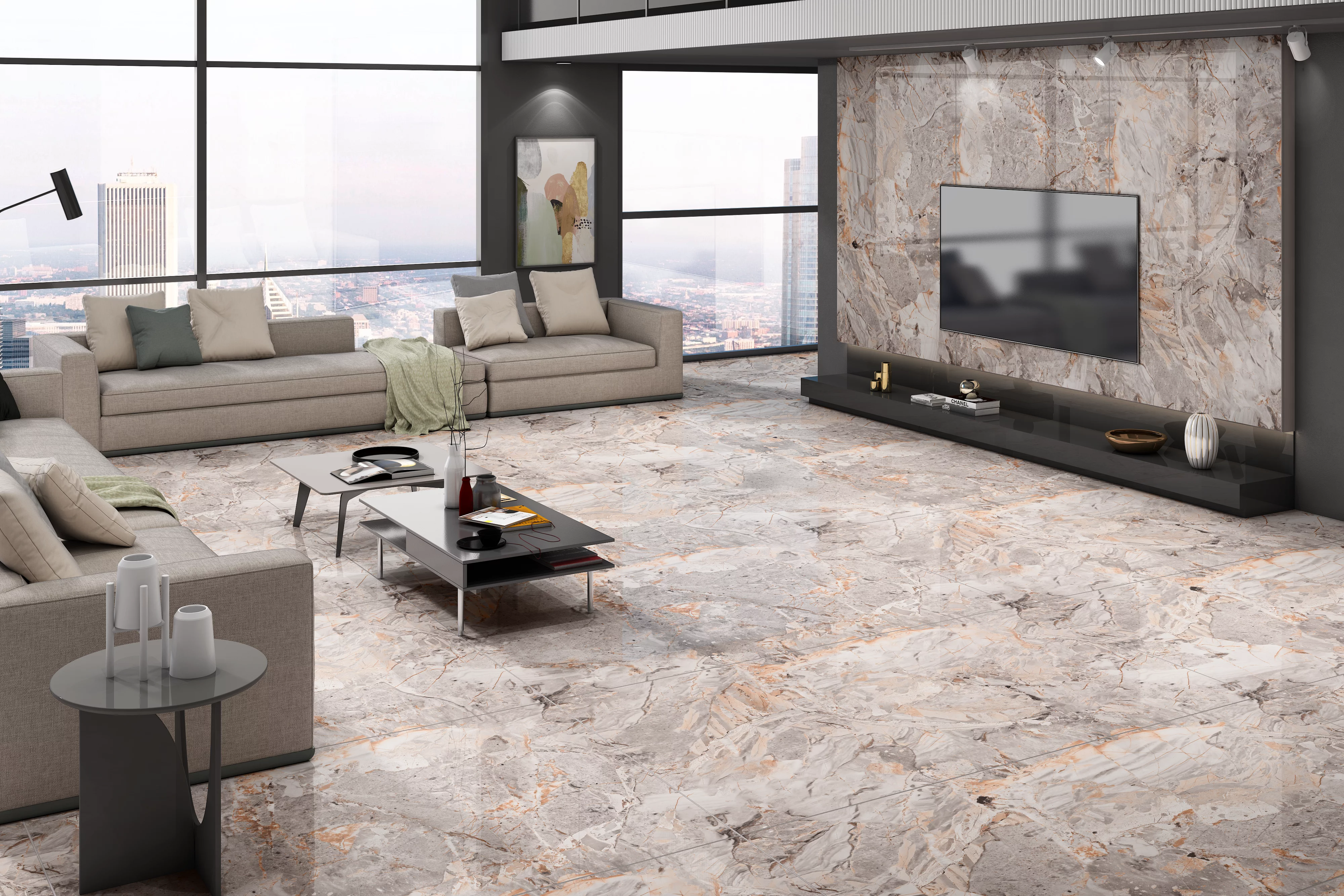 Realizată din porțelanat glazurat de înaltă calitate, cu finisaj lucios și margini rectificate, această gresie creează un efect de marmură naturală în nuanțe de gri și bej, cu accente discrete ce transmit eleganță și rafinament.