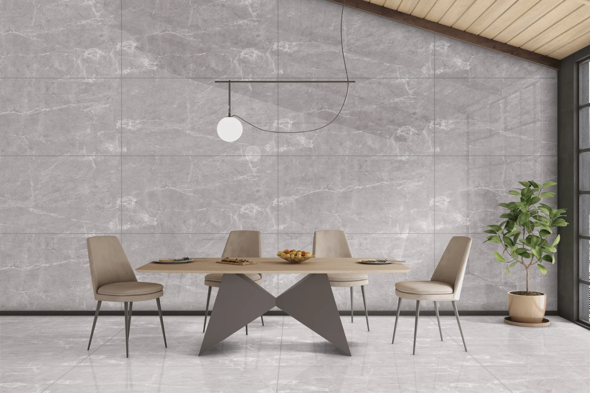 • Culoare / aspect: Gri deschis cu vene albe – efect marmură