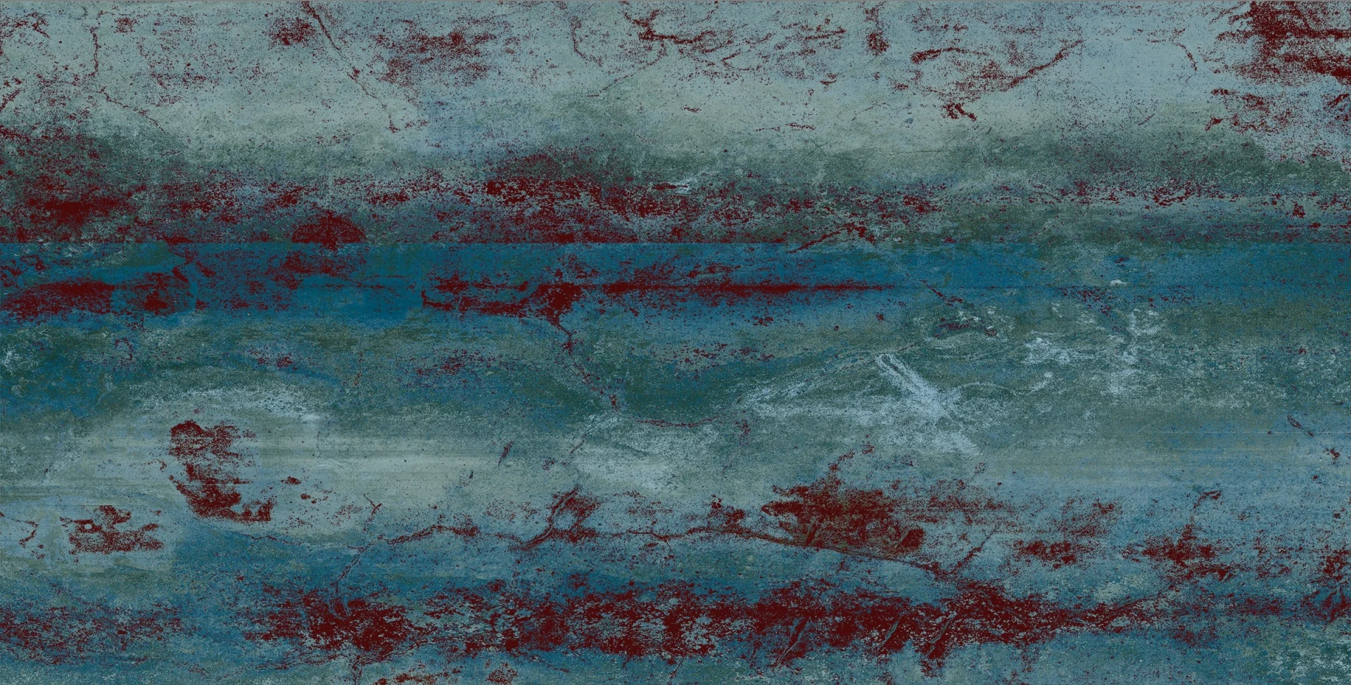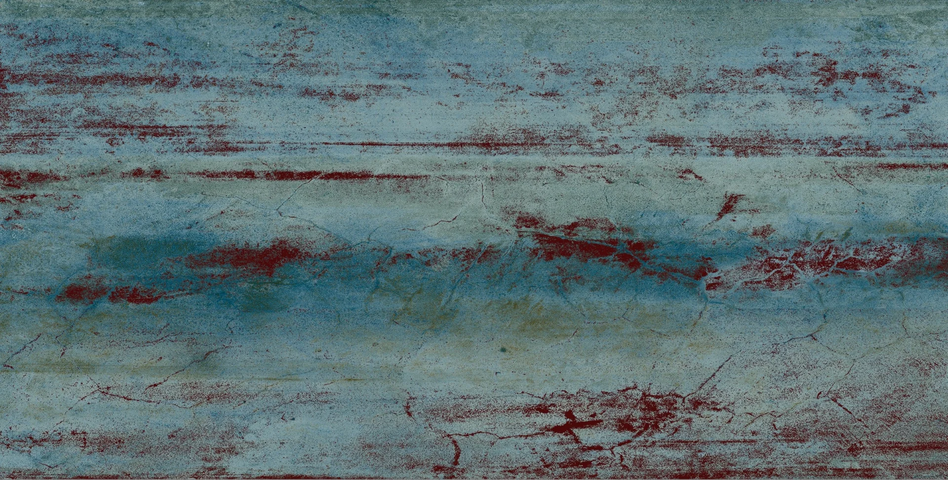 GRESIE ETHOS VERDE GRANDE - 60X120 cm, porțelanată, în nuanțe de verde și albastru cu efecte de rugină și accente metalice, aspect modern-industrial, finisaj mat, potrivită pentru interior și exterior.