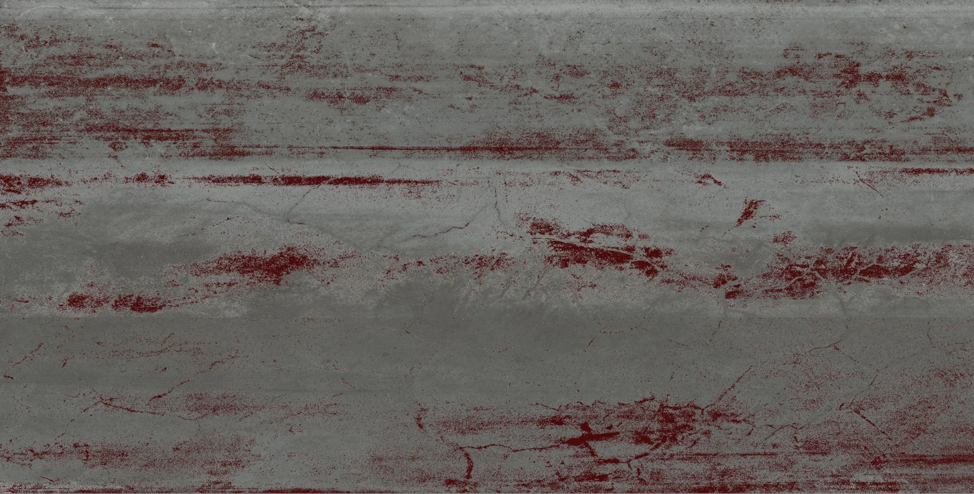 Nuanțele de gri neutru sunt puse în valoare de accente ruginii și reflexii metalice discrete, creând o suprafață cu impact vizual puternic și autentic.