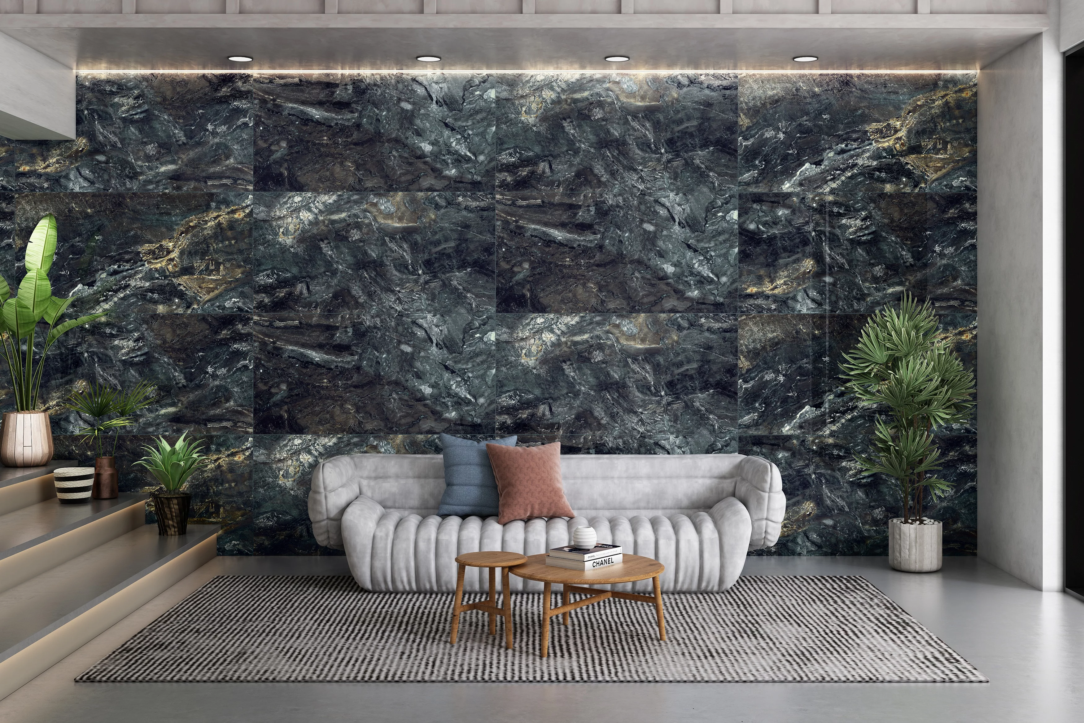 • Aspect luxos de marmură cu tonuri dramatice și sofisticate