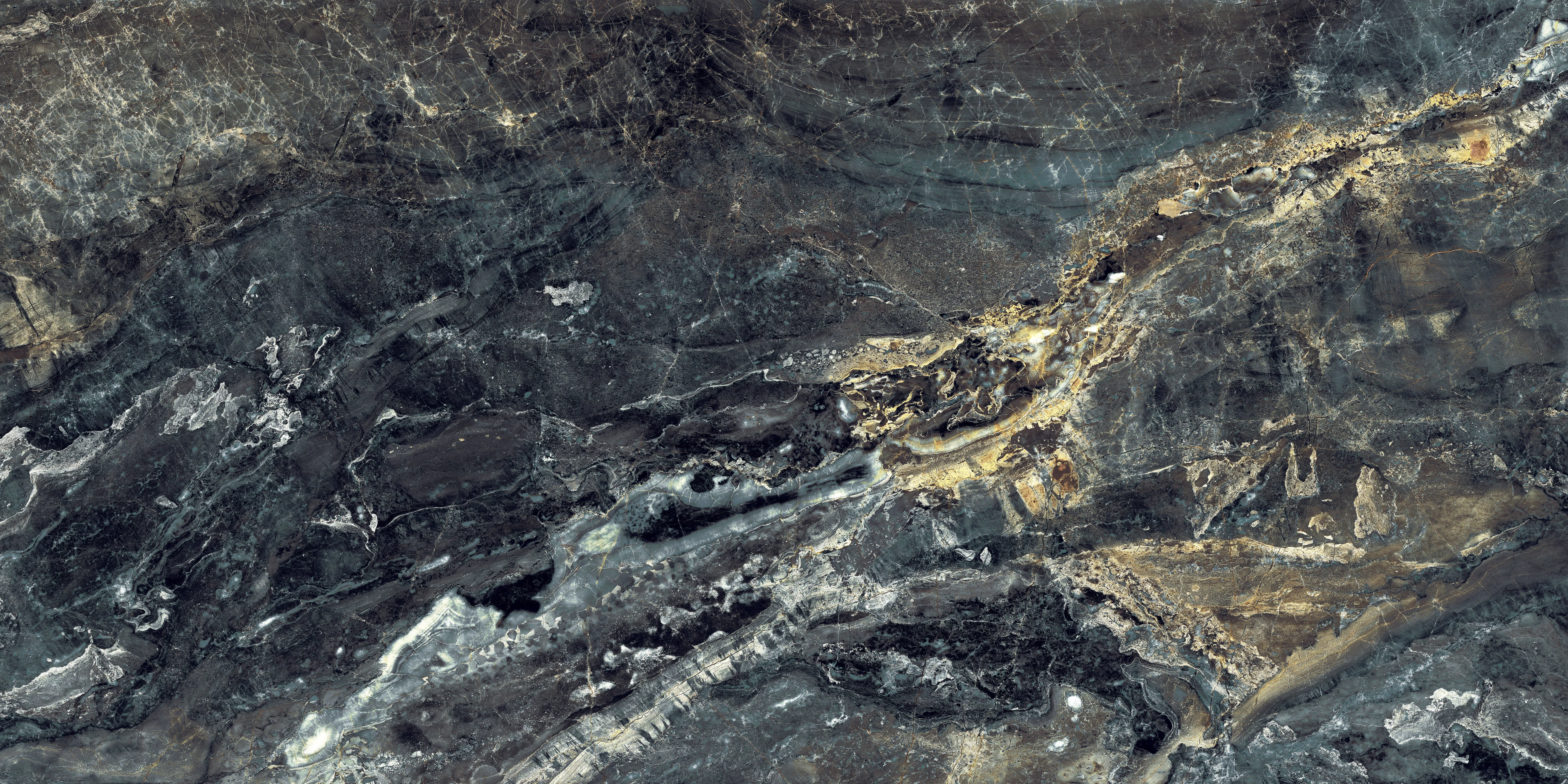 GRESIE BRECHE DUMAS - 80X160 cm, porțelanată, în nuanțe intense de negru, gri și auriu, cu aspect sofisticat de marmură, finisaj super lucios high glossy, potrivită pentru interior.