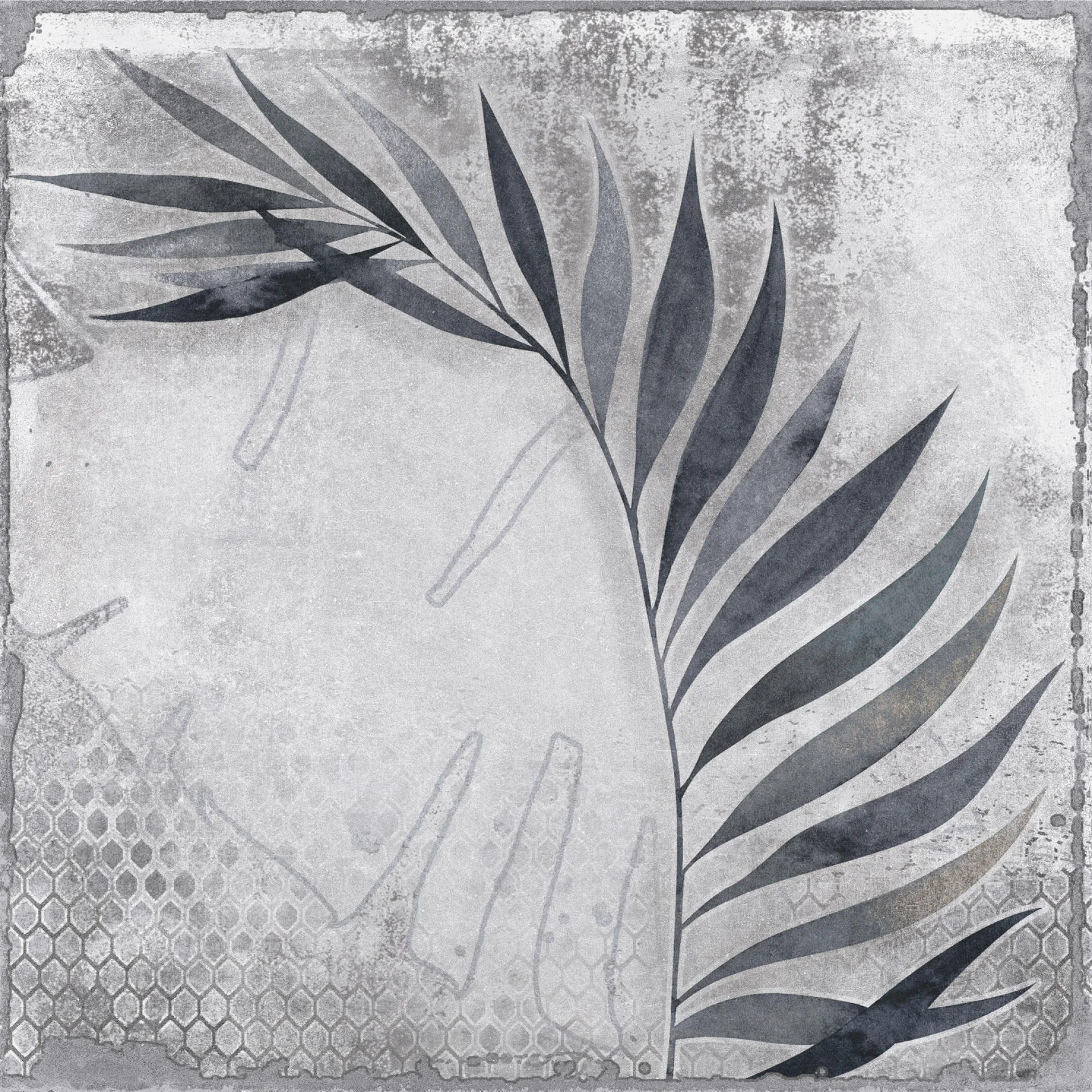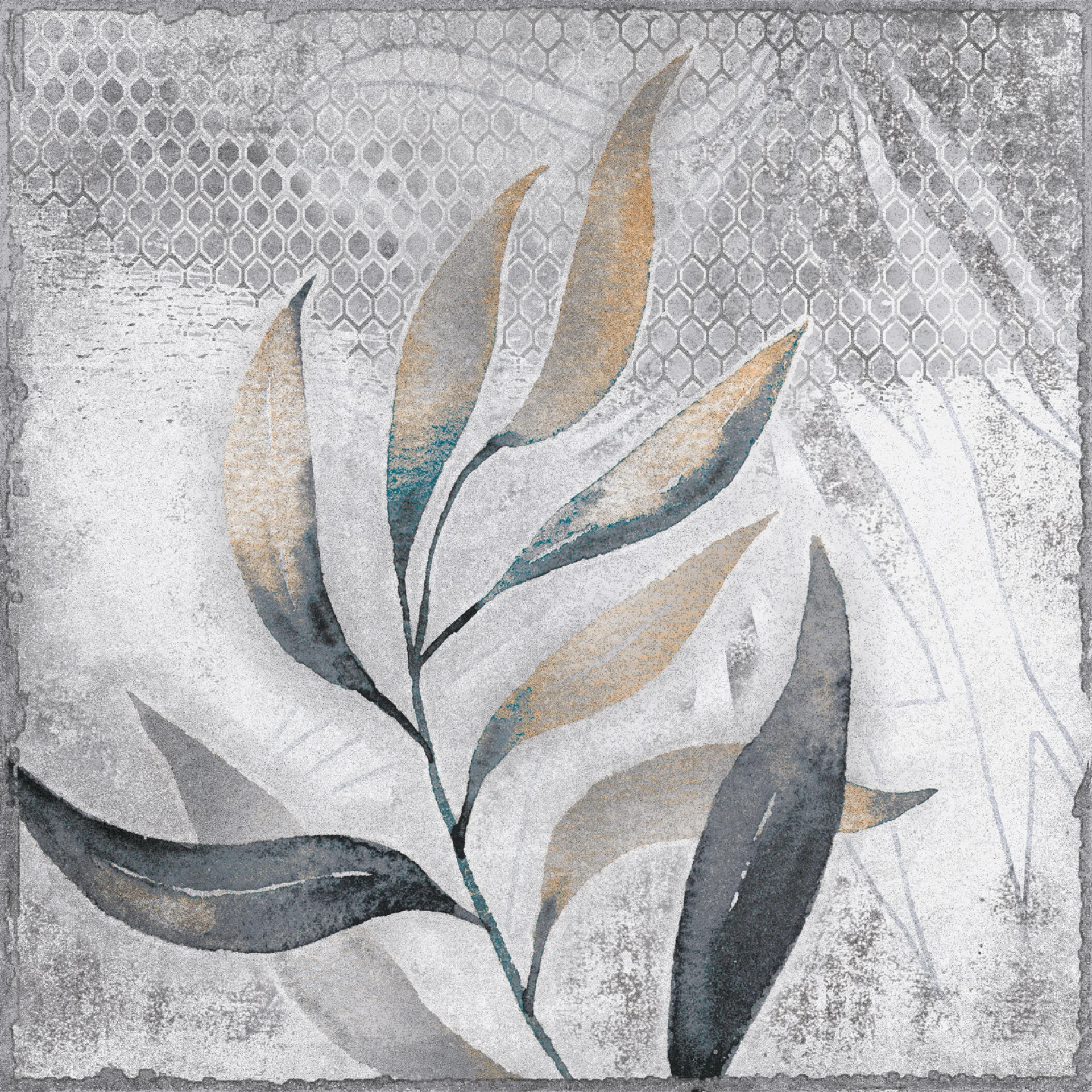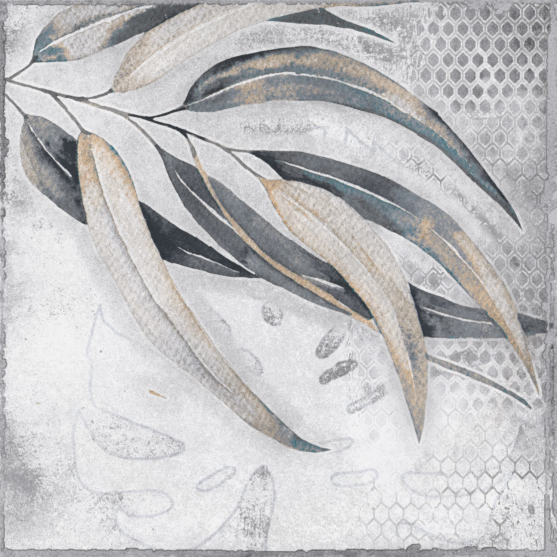 FAIANTA DECOR NG ASTORIA SILVER HL - 30X30 cm, ceramică glazurată cu finisaj rustic punch, mată, gri, in 16 modele unice cu frunze stilizate.