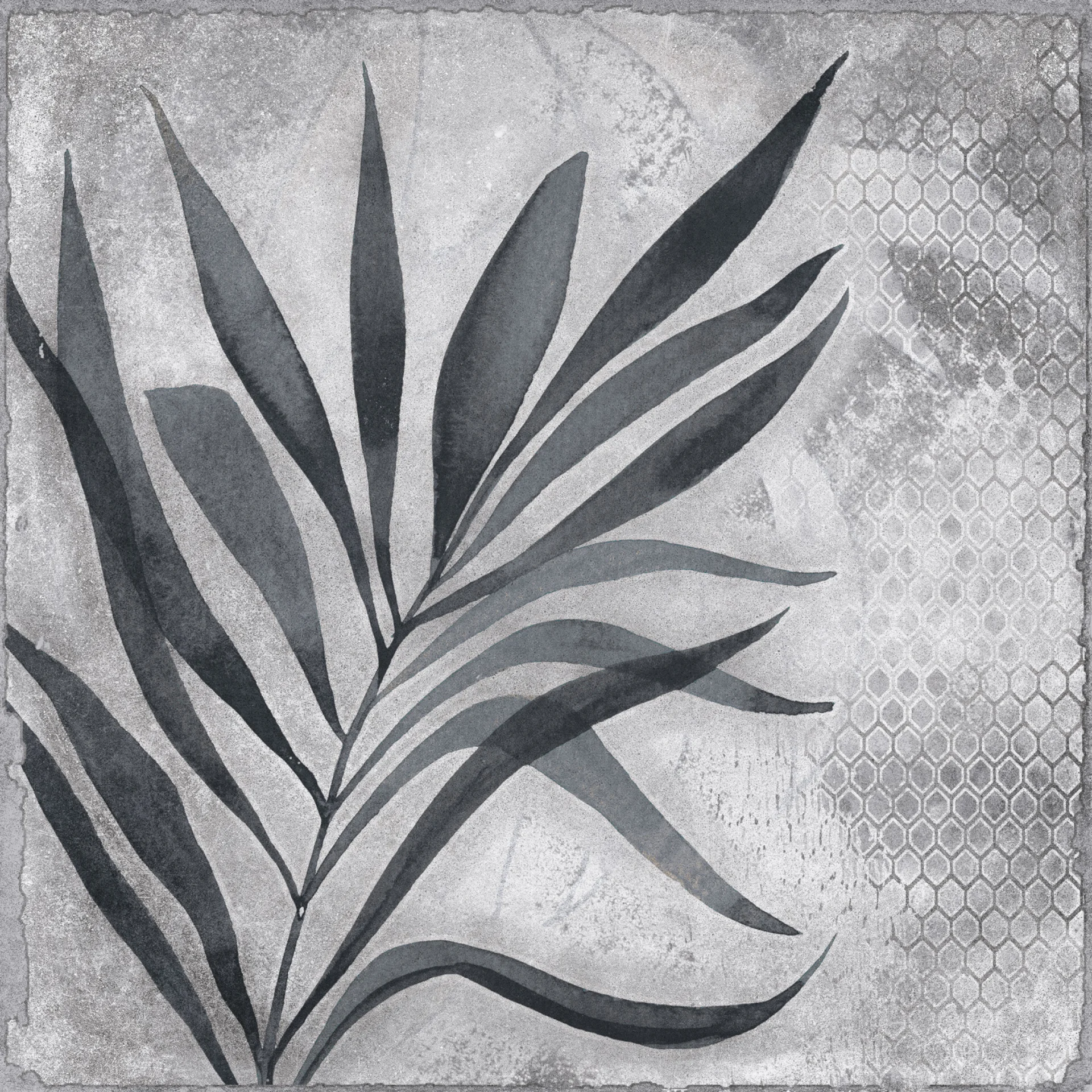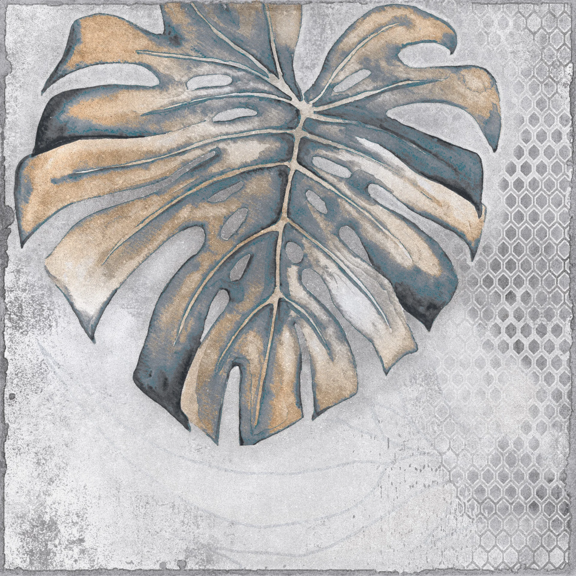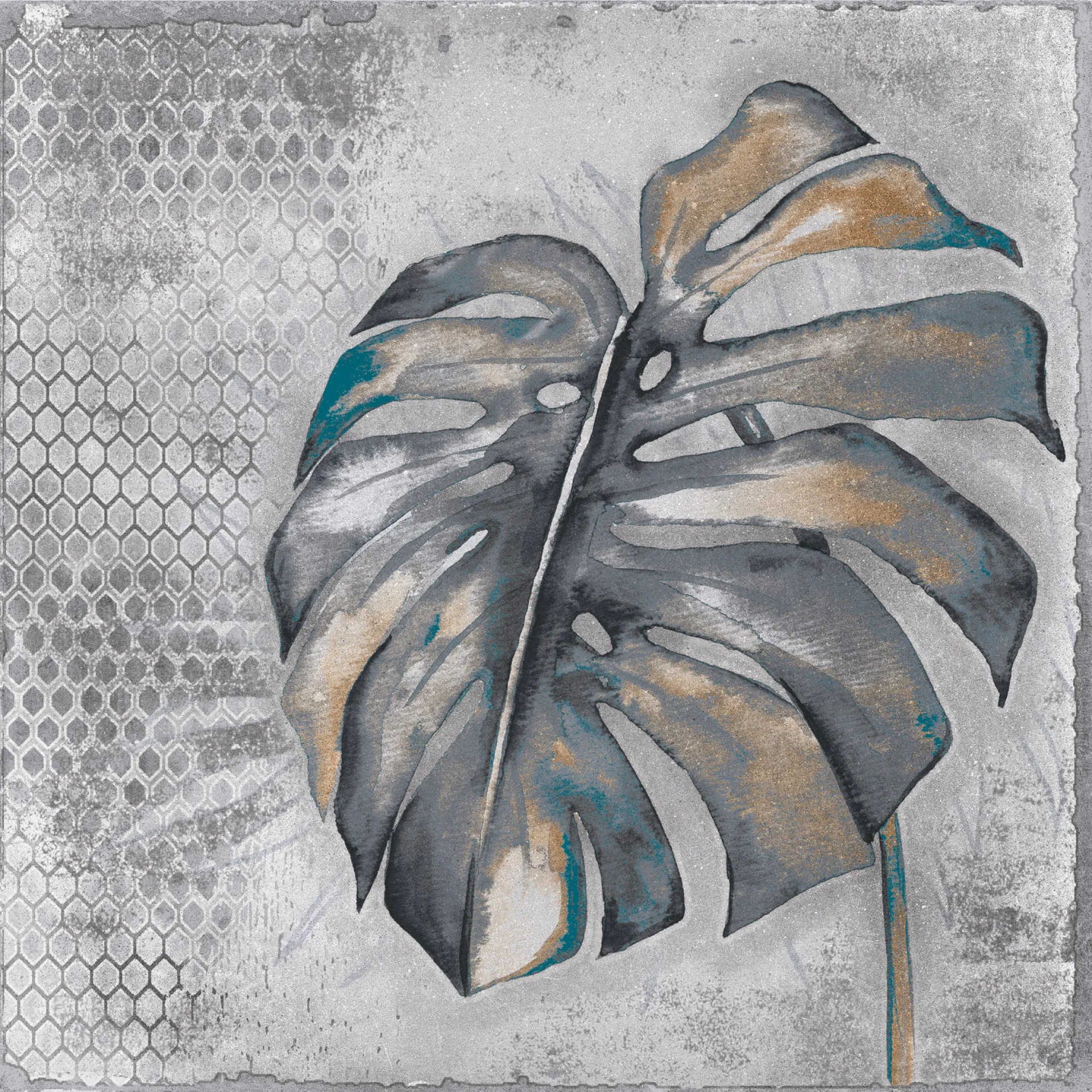 FAIANTA DECOR NG ASTORIA SILVER HL - 30X30 cm, ceramică glazurată cu finisaj rustic punch, mată, gri, in 16 modele unice cu frunze stilizate.