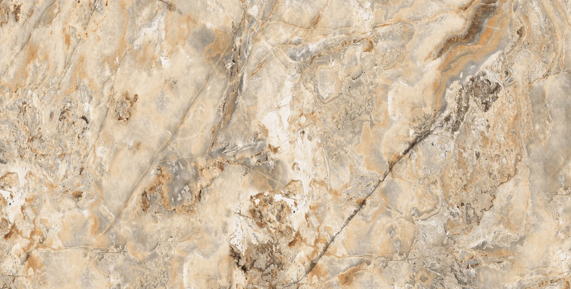GRESIE SARREN COLLIN - 80X160 cm, porțelanată, rectificată, glazurată, finisaj super lucios High Glossy, aspect marmură bej-auriu cu vene spectaculoase, random 4, interior.