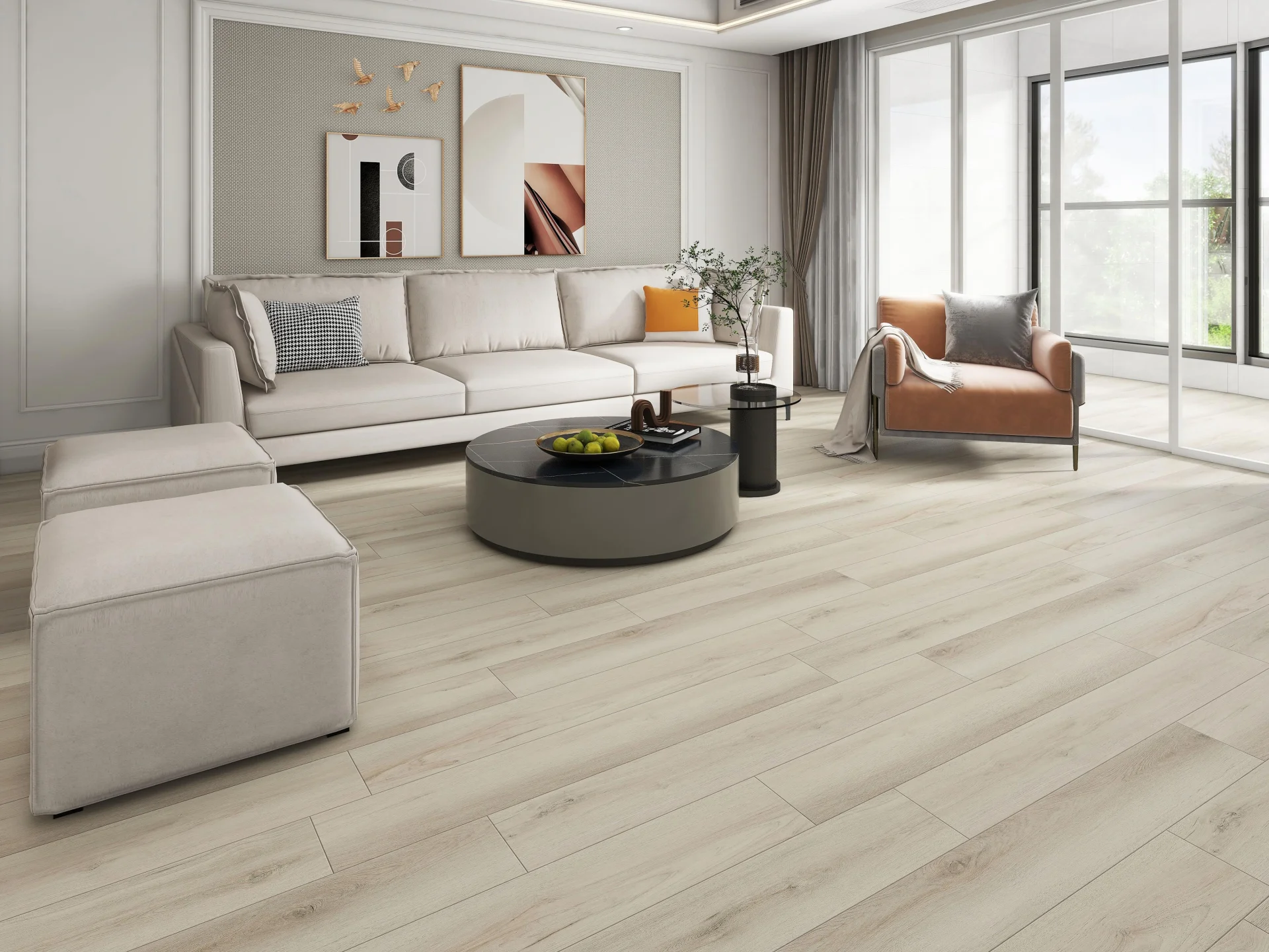 Cu un decor în nuanțe rafinate de gri-bej și o textură realistă de lemn, acest model aduce lumină și armonie în orice încăpere.