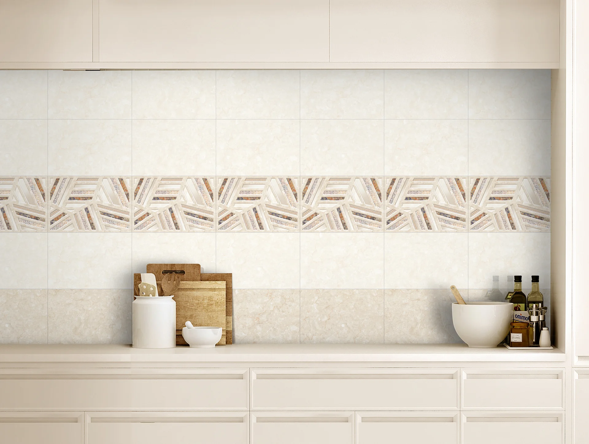Potrivită pentru placarea pereților în băi, bucătării, holuri sau alte spații interioare unde este dorită o atmosferă luminoasă și curată. Se poate combina cu modele decorative din aceeași gamă sau cu plăci contrastante pentru a crea accente vizuale interesante.