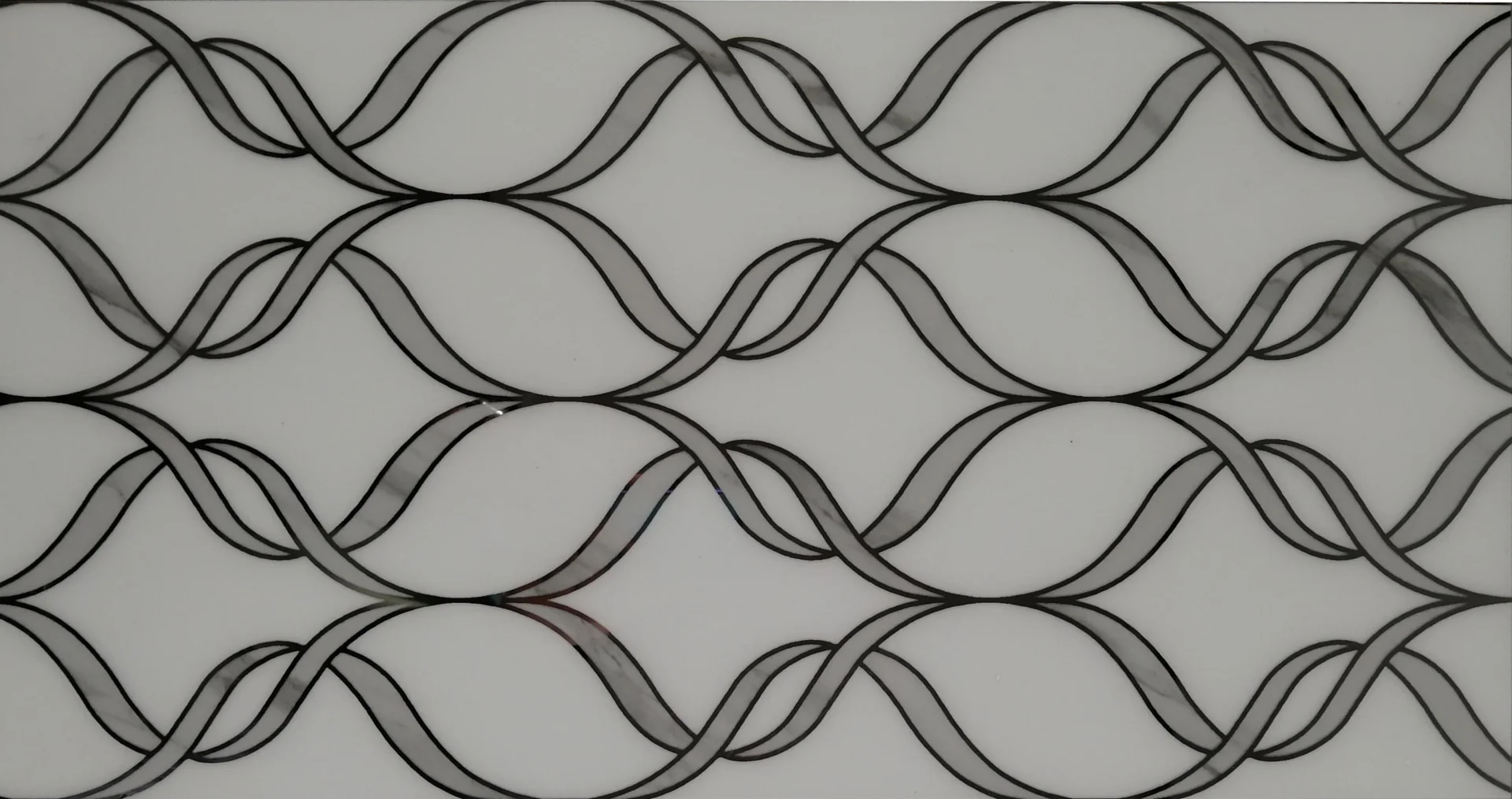 PLACA DECOR FAIANTA FC-36BG1652-M - 30X60 cm, portelanata, glazurata, rectificata, alb lucios cu decor ondulat negru, design fluid și modern pentru interioare rafinate.