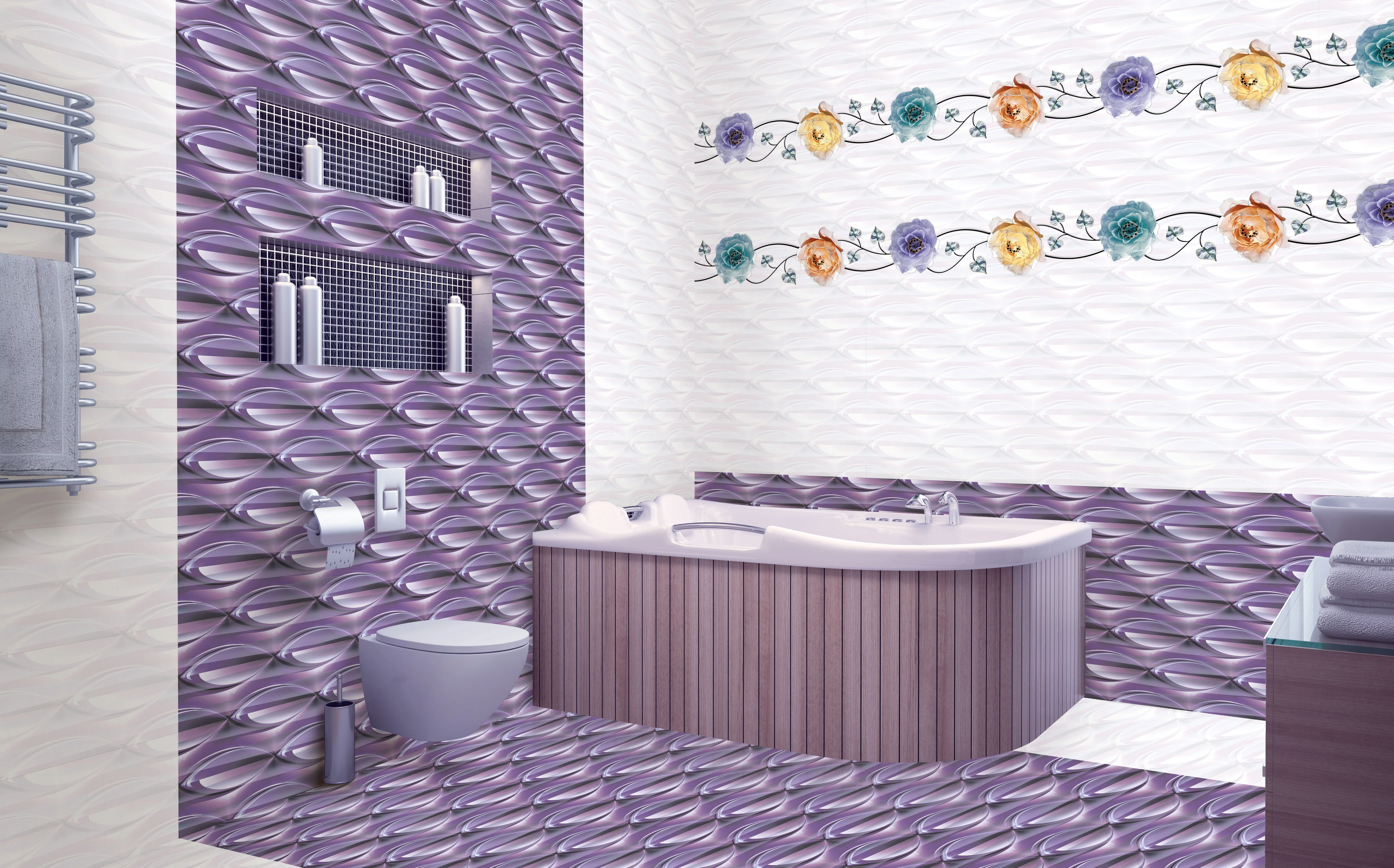 FAIANTA BOWL PURPLE HL - 25X75 cm, ceramica glazurată, lucioasă, rectificată, decor floral 3D în nuanțe mov și crem, pentru interioare rafinate.