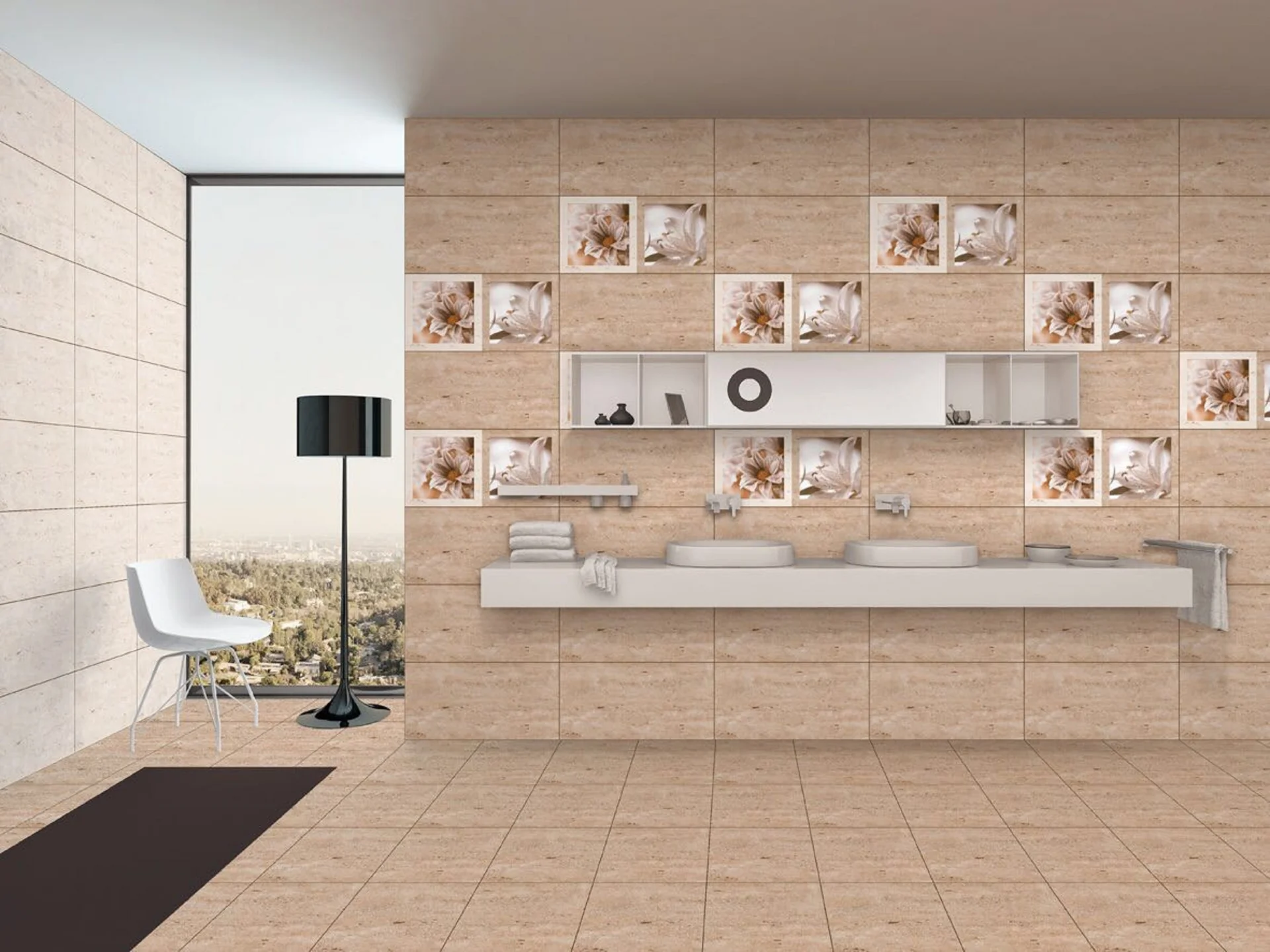 FAIANTA TRAVERTINE LILY 30186-HL-TV EVIA - 30X60 cm, ceramica glazurata, rectificata, mata, aspect floral, ideală pentru băi și bucătării elegante.