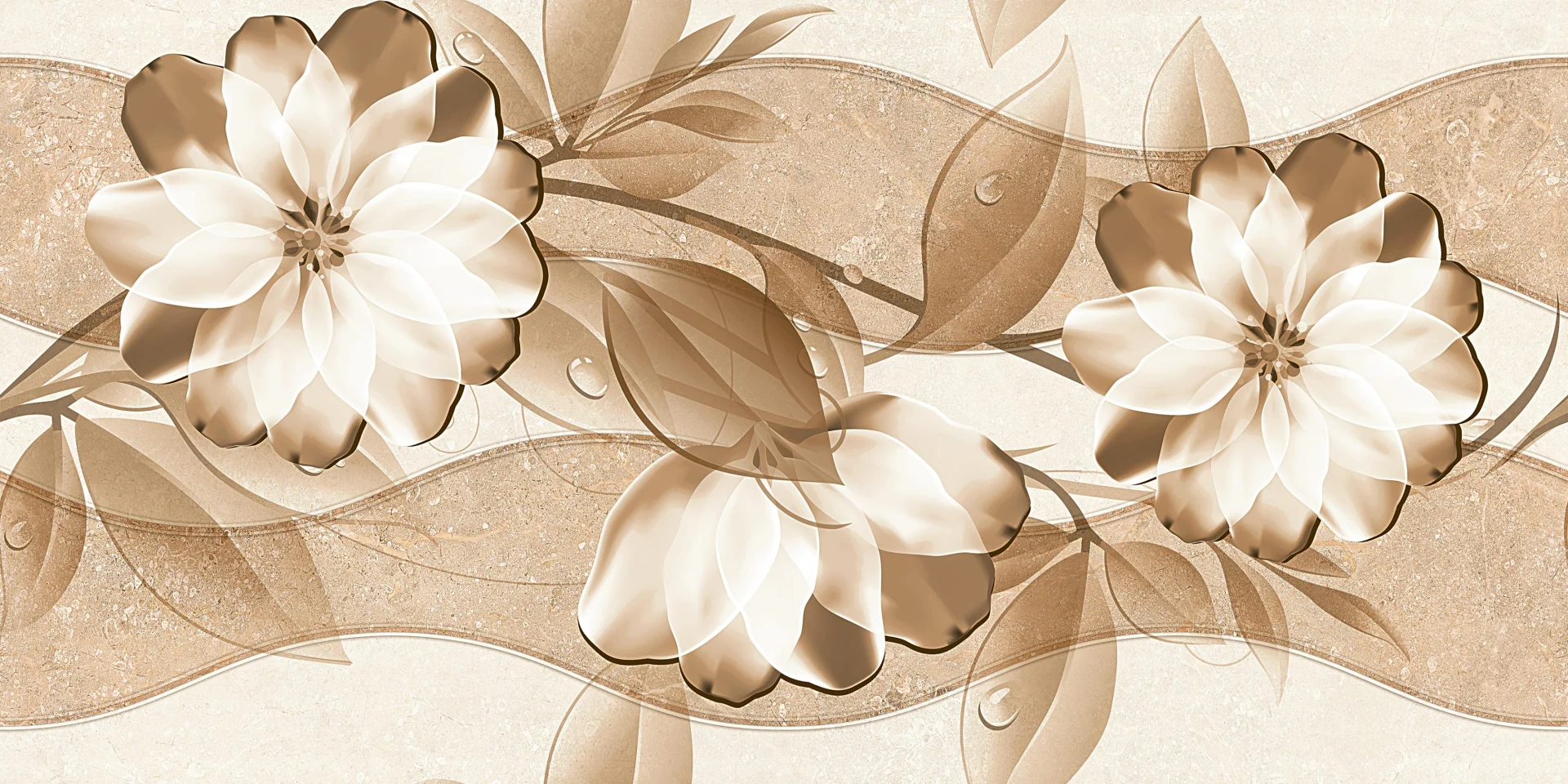 Faianta EX 80052 HL1 este un decor ceramic cu flori stilizate în nuanțe calde de bej, maro și crem, care aduce un plus de rafinament și delicatețe oricărui spațiu interior.