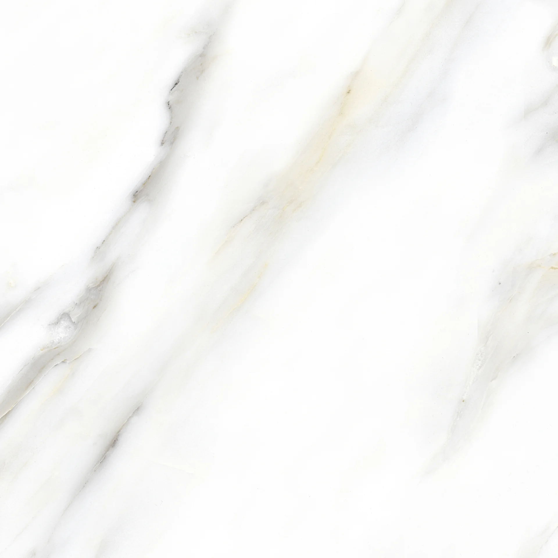 Gresia WHITE MARBLE T6042F este o placă ceramică glazurată cu aspect de marmură albă, având vinișoare fine gri-bej pe fundal alb, într-un finisaj mat elegant.