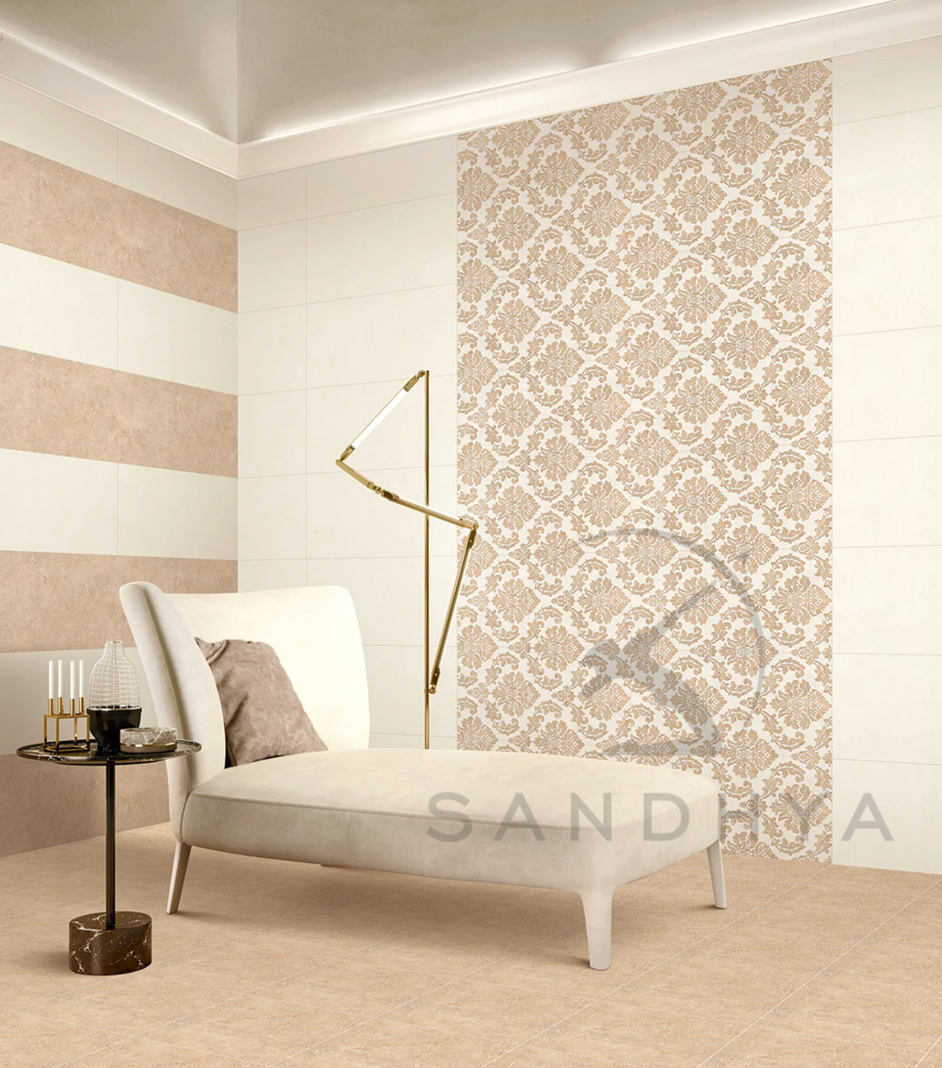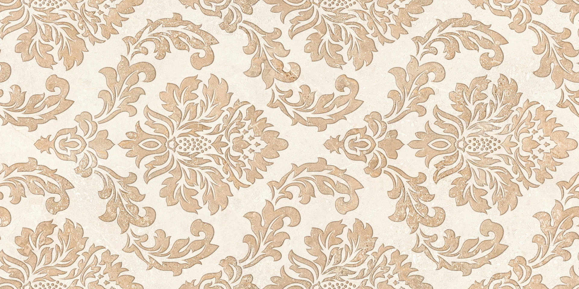 FAIANTA EX 80052 HL5 LARA - 30X60 cm, ceramica glazurata, lucioasa, rectificata, cu detalii damask in relief, model clasic ornamental în nuanțe crem și bej, pentru interioare elegante.