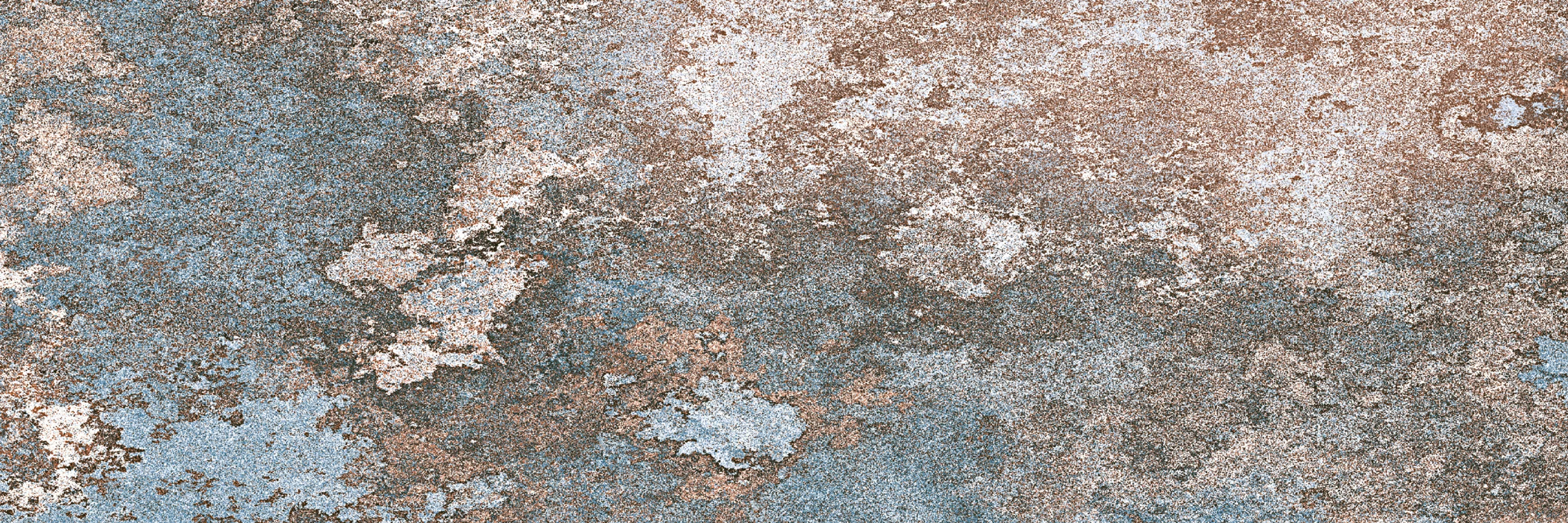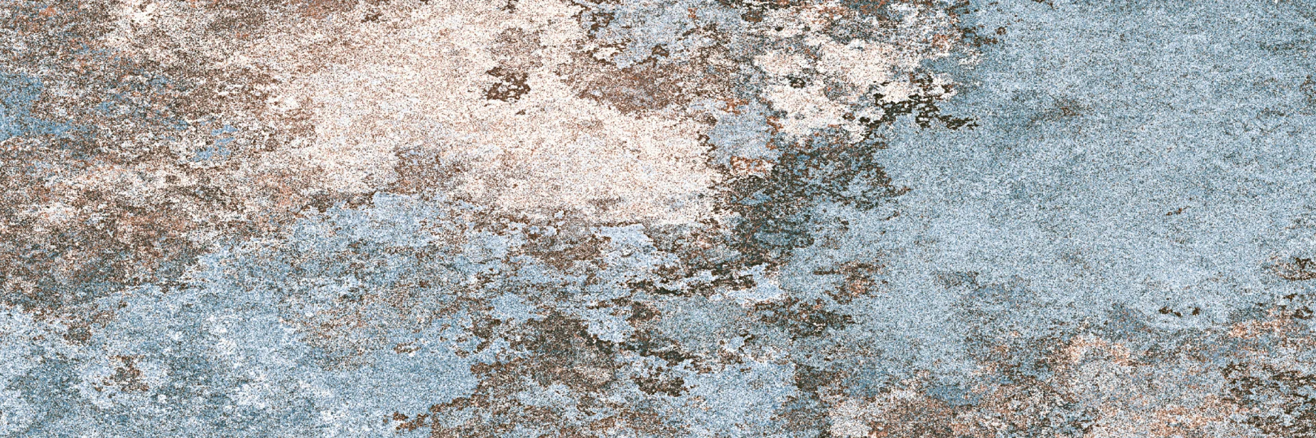 Suprafața mată este decorată cu un model natural, cu aspect de piatră erodată, în nuanțe texturate de albastru pal, maro ruginiu și gri mineral.