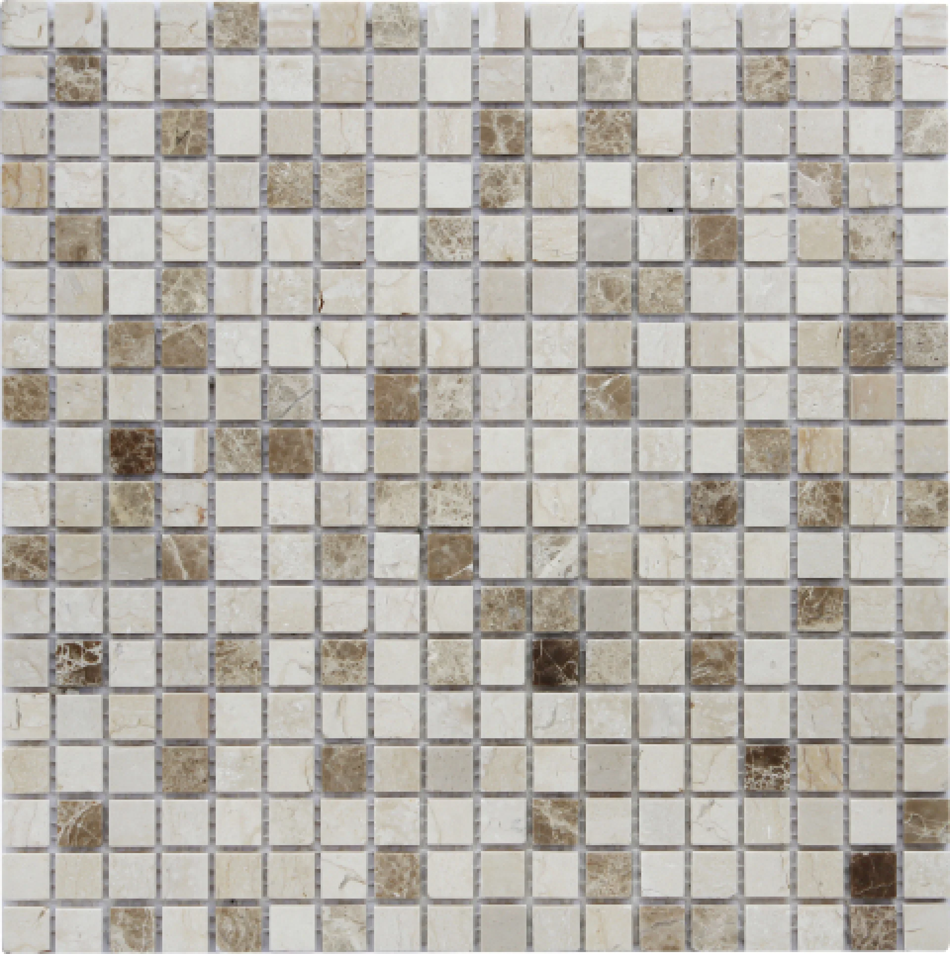 MOZAIC PE PLASA AGOR41P21 - 30.5X30.5 cm, din marmură naturală în nuanțe mixte de crem, bej și maro, ideal pentru placări interioare și exterioare cu aspect elegant și natural.