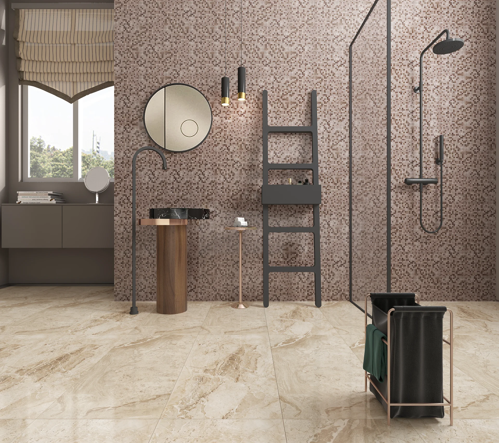 Mozaicul AGOR41P21 este ideal pentru placări verticale precum pereți de baie, dușuri, bucătării, coloane decorative sau panouri accent.