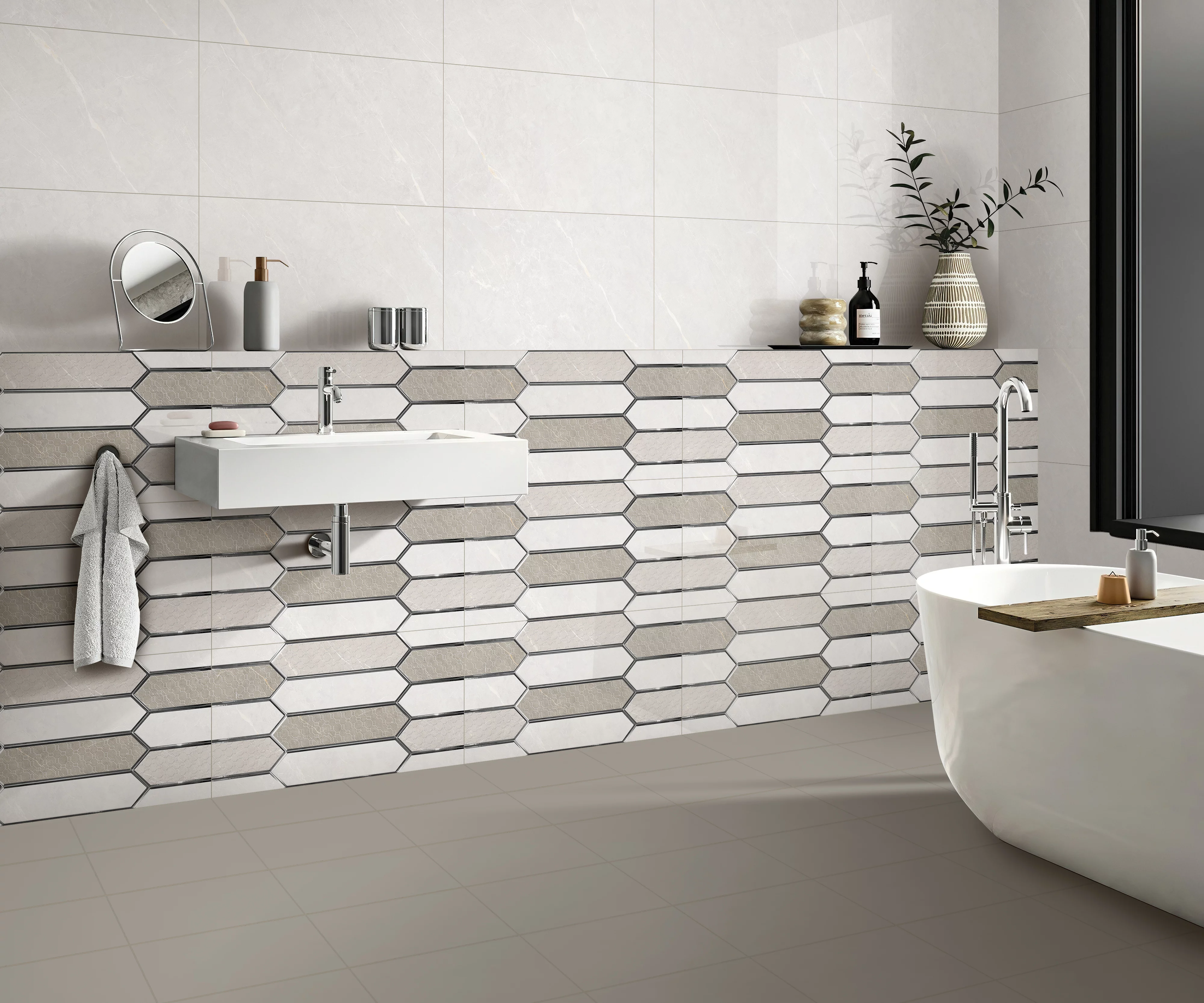 Potrivită pentru băi, bucătării, holuri sau zone de zi, această faianță oferă un fundal elegant și luminos.