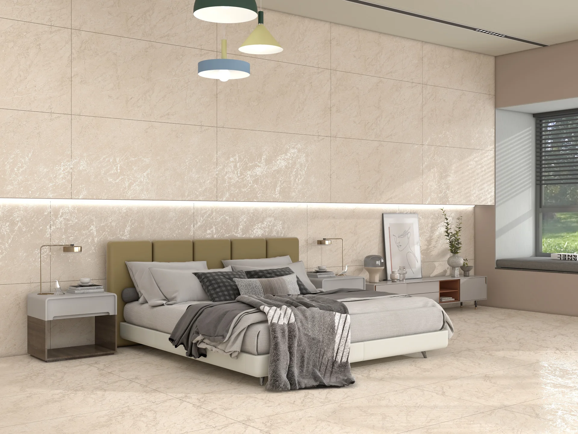 Tonurile bej cald oferă luminozitate și rafinament oricărui ambient iar finisajul mat cu efect multicarving adaugă profunzime și caracter suprafeței.