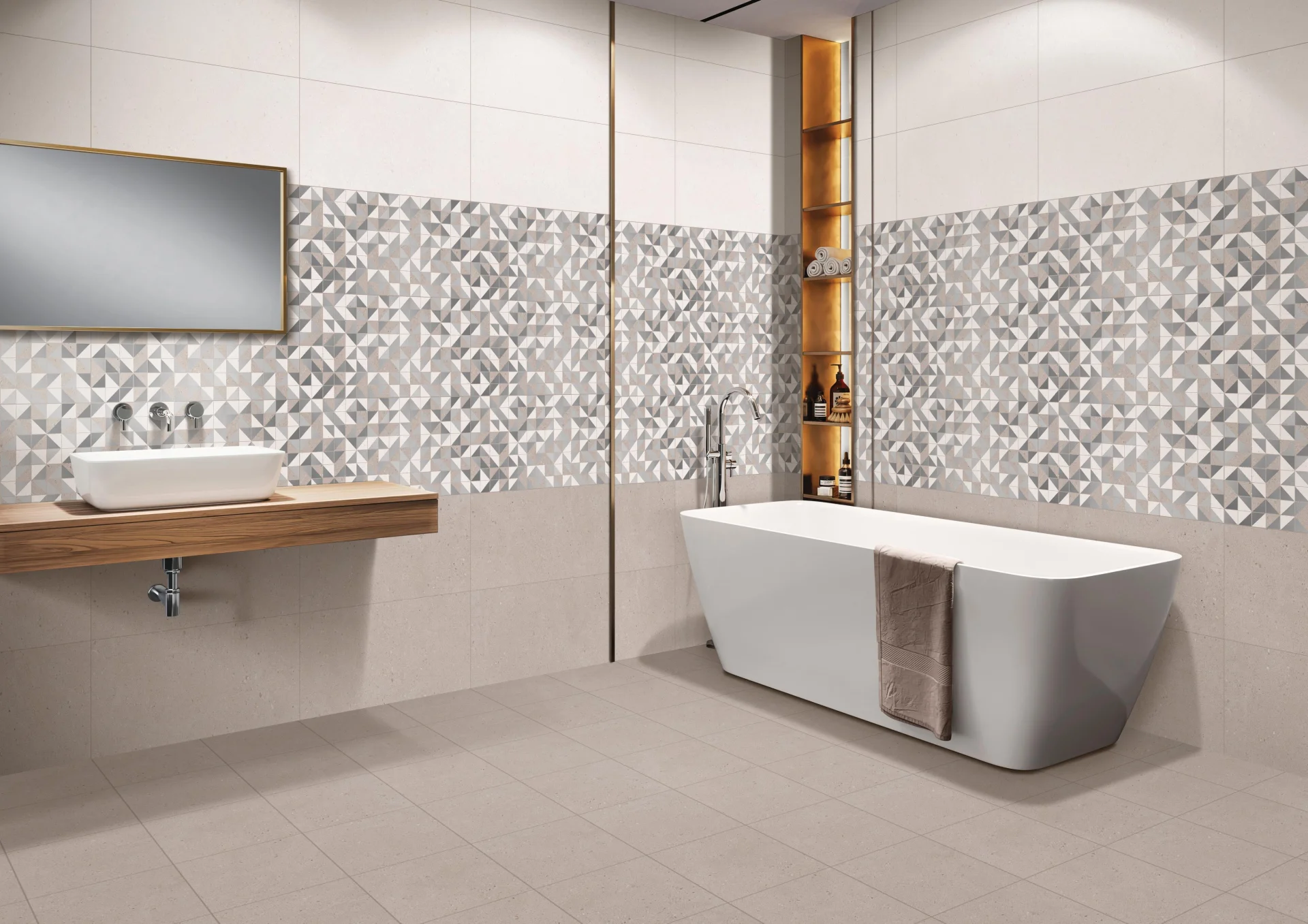 Ideală pentru placarea pereților în spații interioare rezidențiale sau comerciale, băi, bucătării, holuri sau spații de trecere, unde se dorește un decor natural și echilibrat.