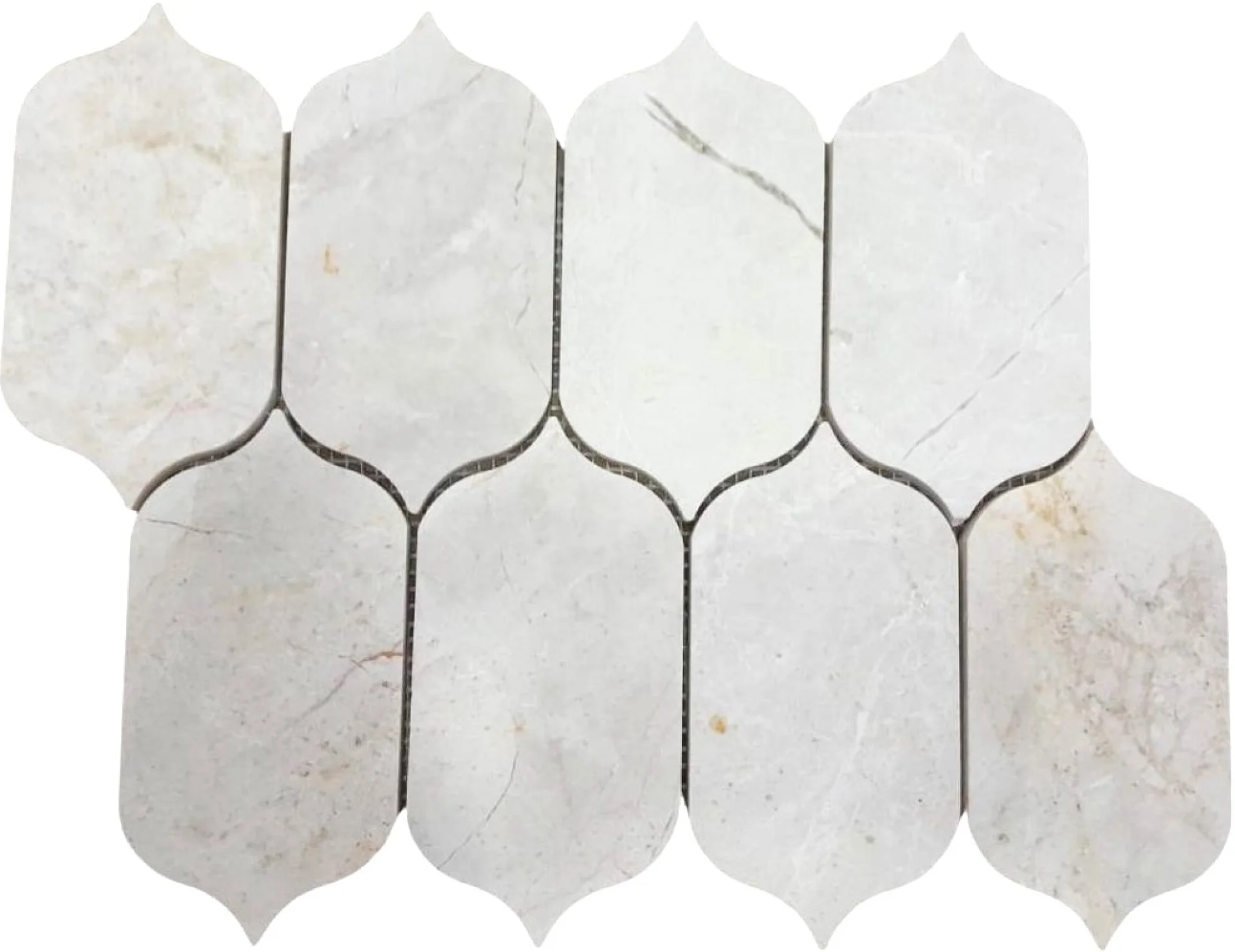 MOZAIC DIN MARMURA ORIENTAL - 23X30.5 cm, cu finisaj mat, în nuanțe deschise de alb și bej, eleganță orientală într-un format decorativ aparte.