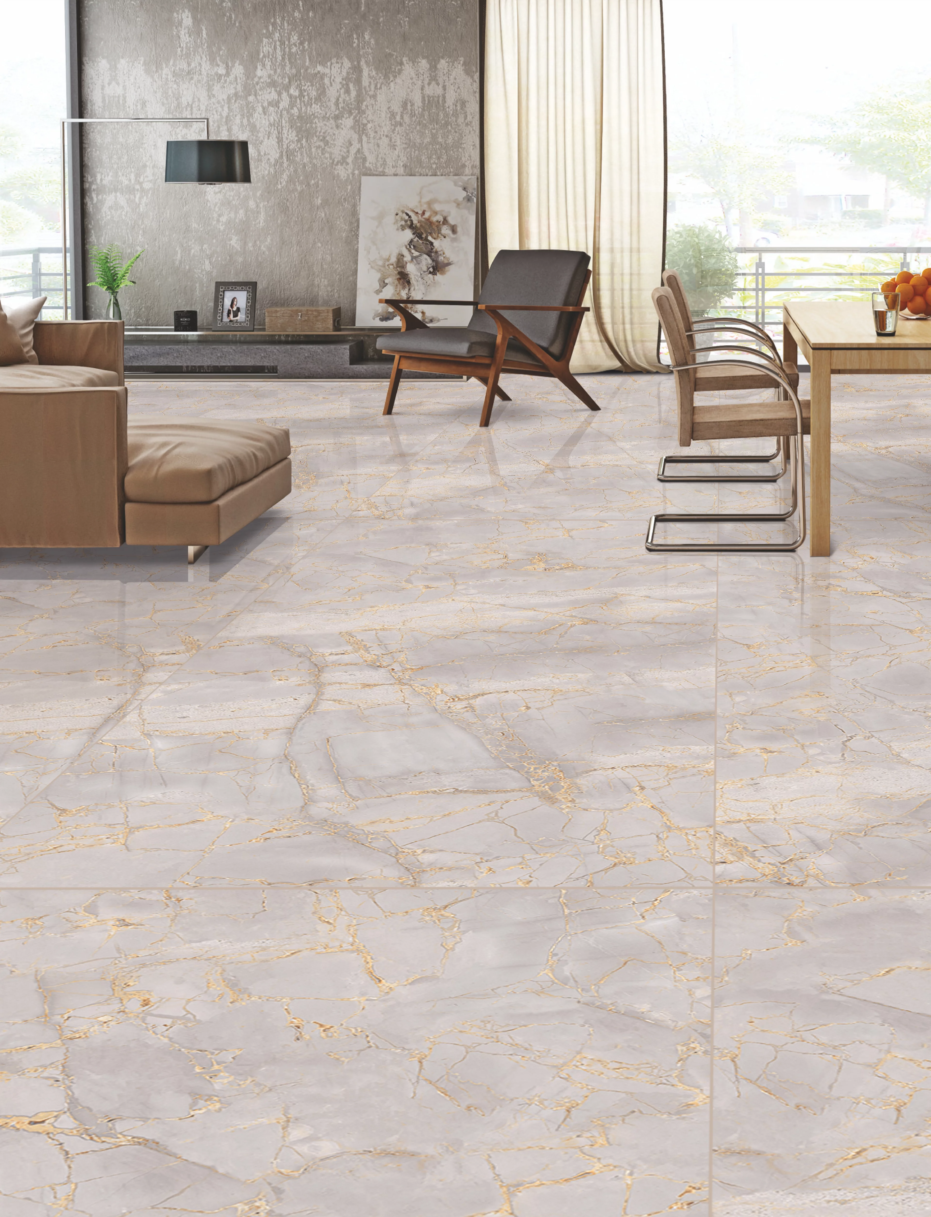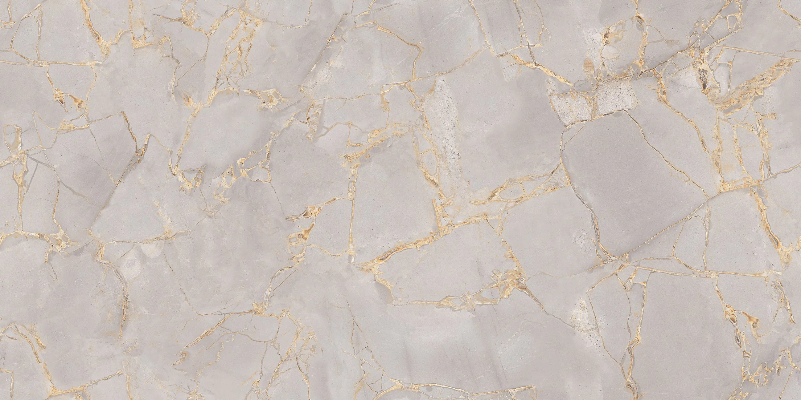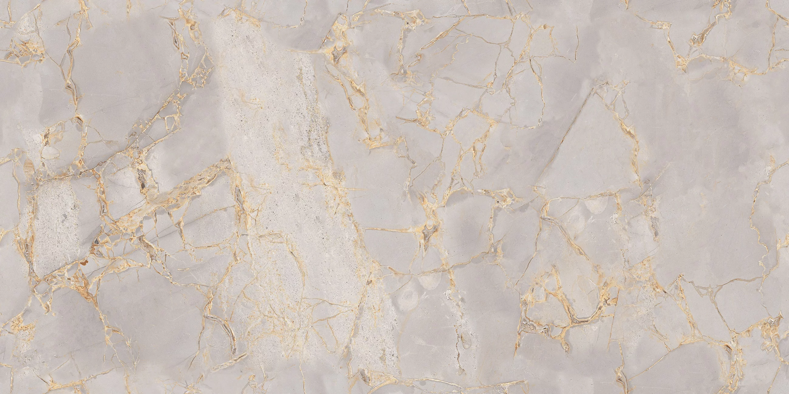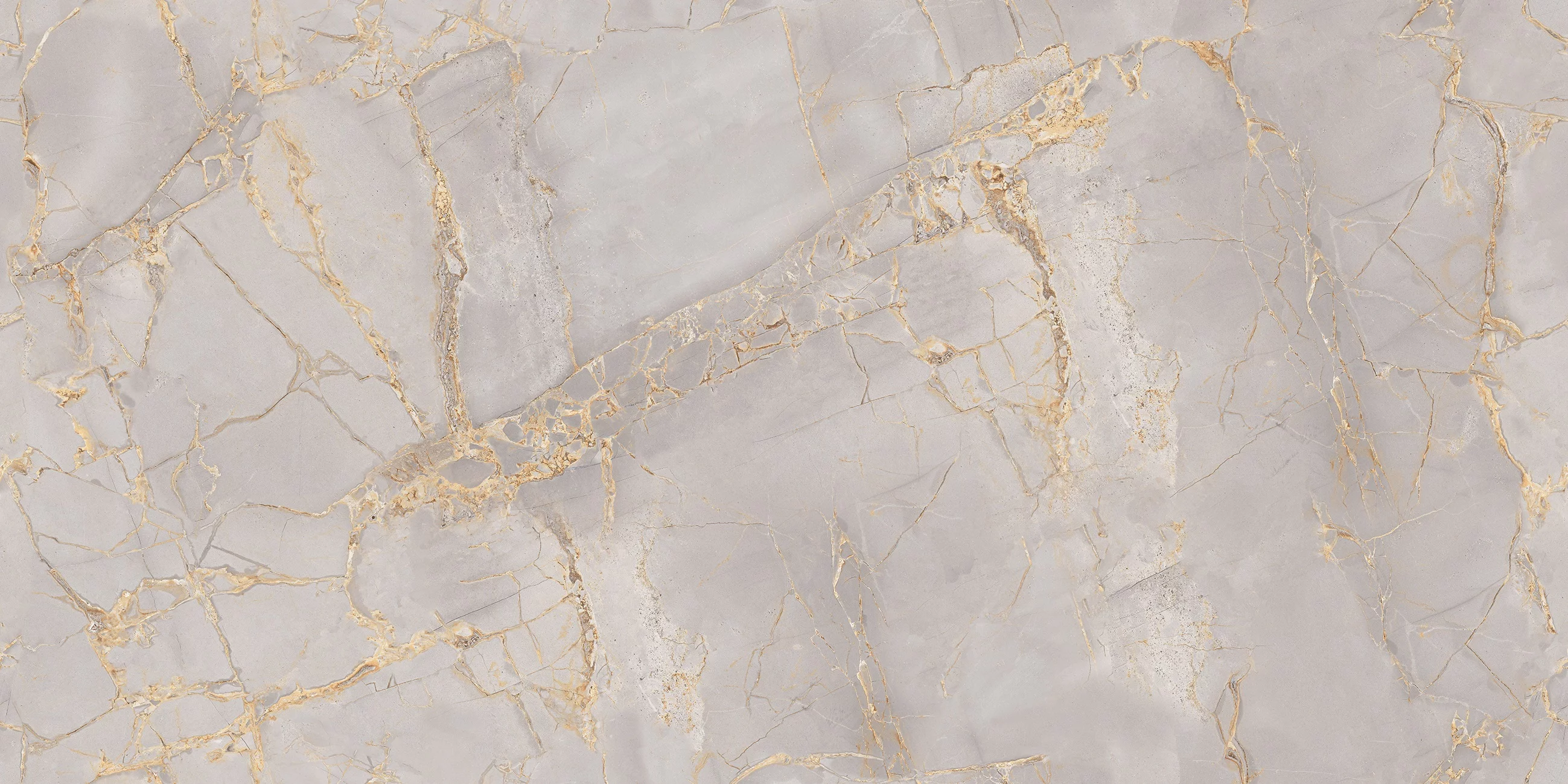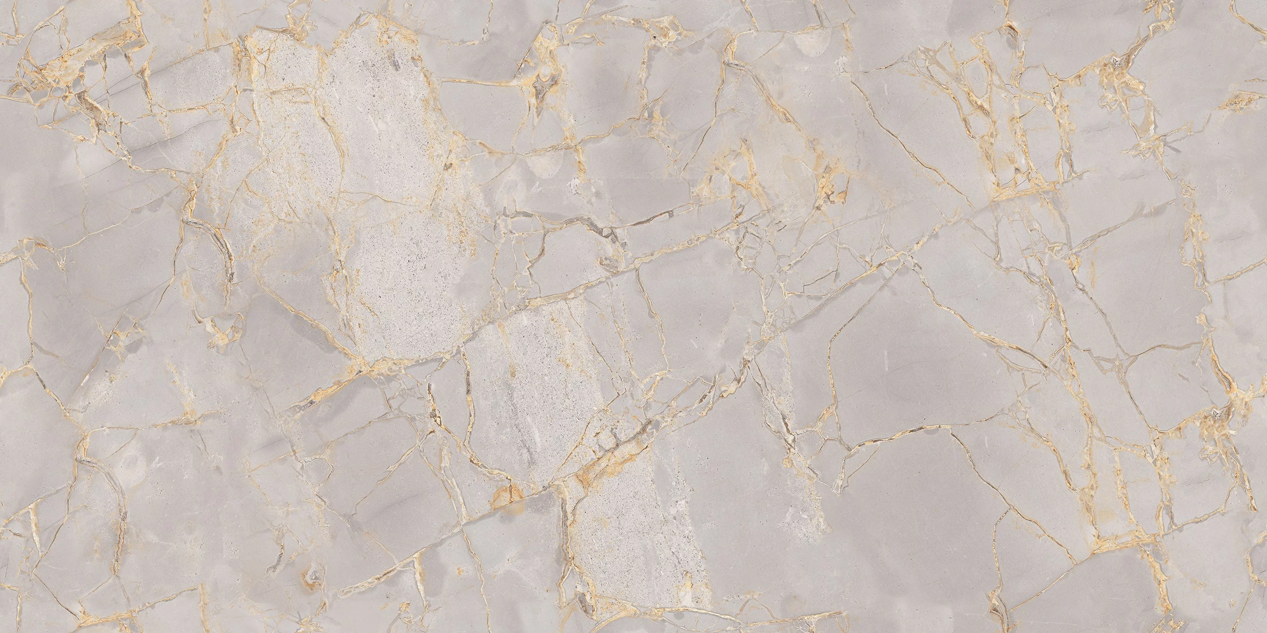 Gresia VERONA GOLD ENDLESS îmbină rafinamentul marmurei gri cu inserții aurii spectaculoase, redând un efect de lux discret, dar expresiv.