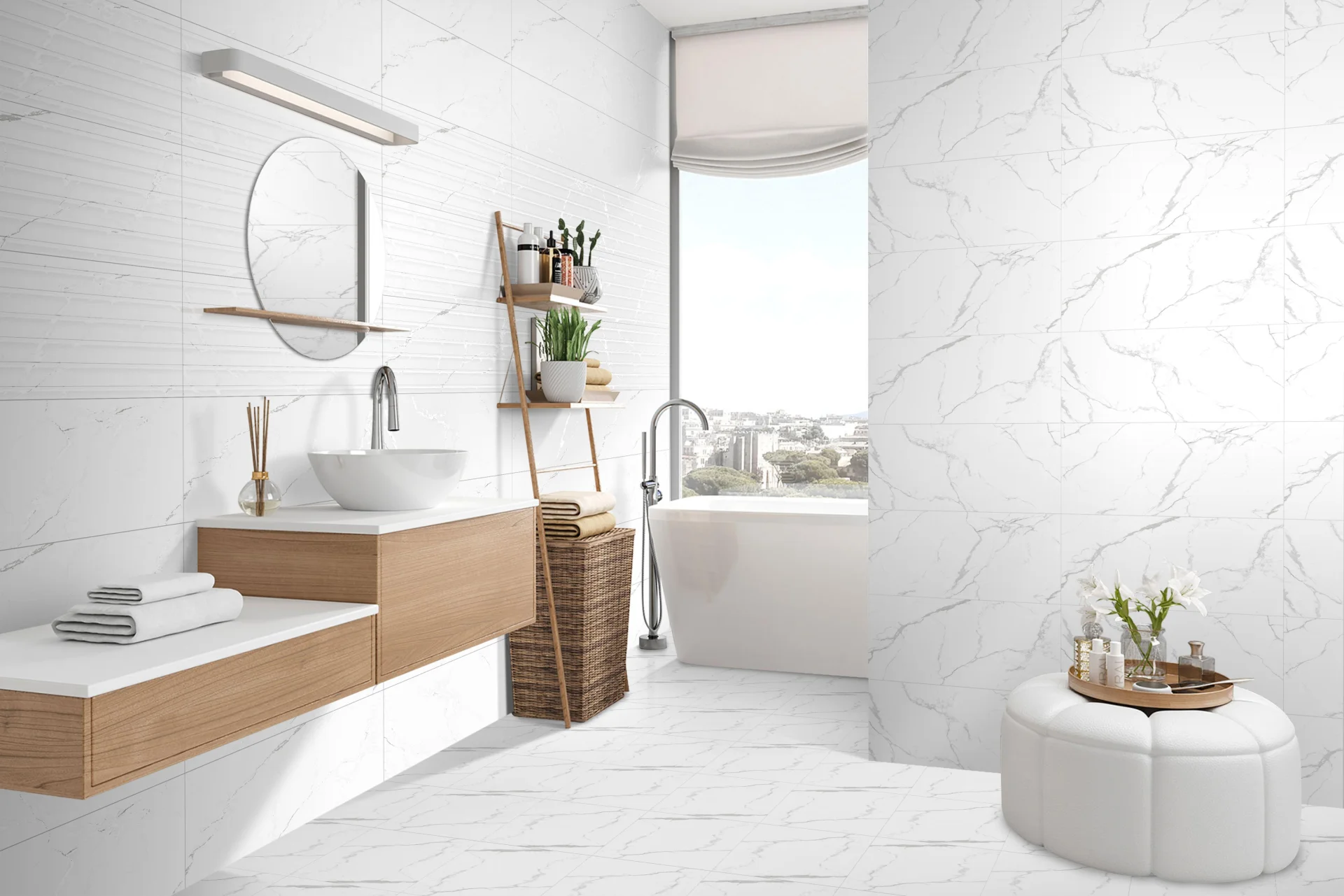 • Design elegant inspirat de marmura albă