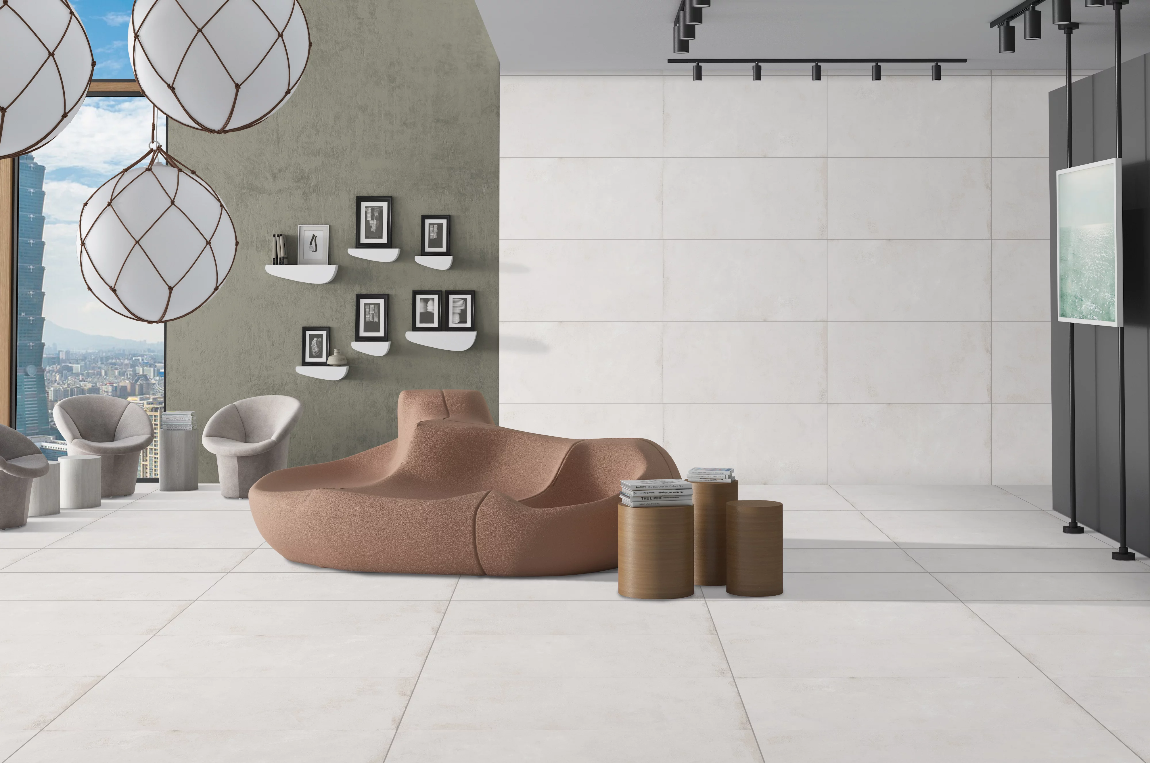 Placa porțelanată rectificată permite un montaj cu rosturi fine, oferind un aspect continuu și modern.