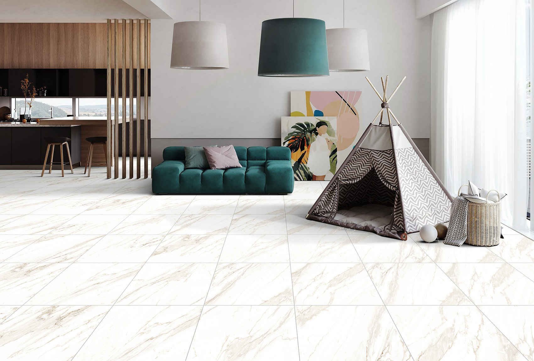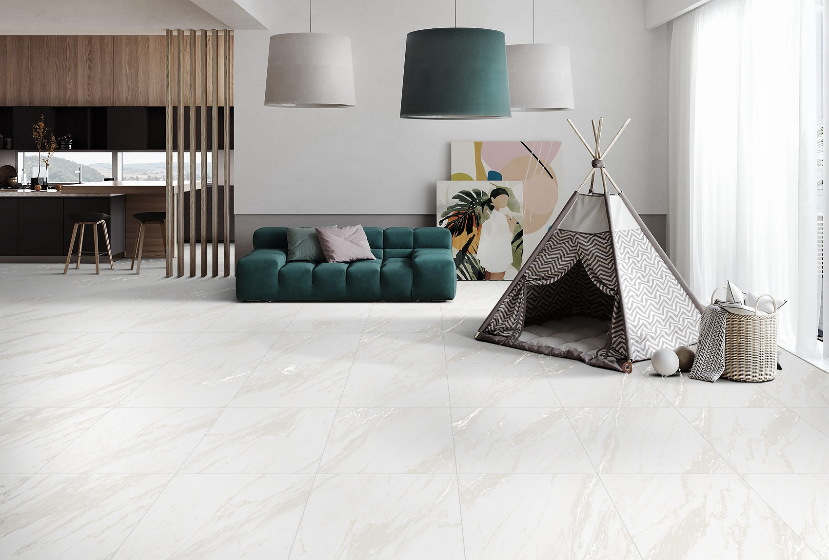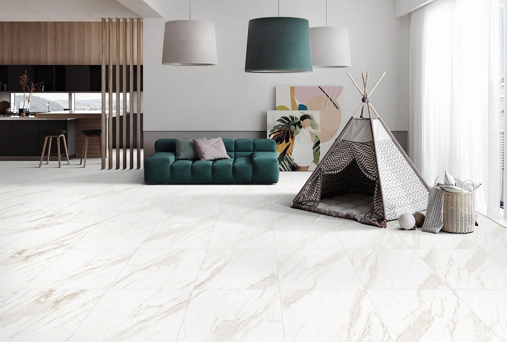 Formatul 60x60 cm și marginile rectificate permit montaj cu rosturi fine, pentru un efect continuu și modern.