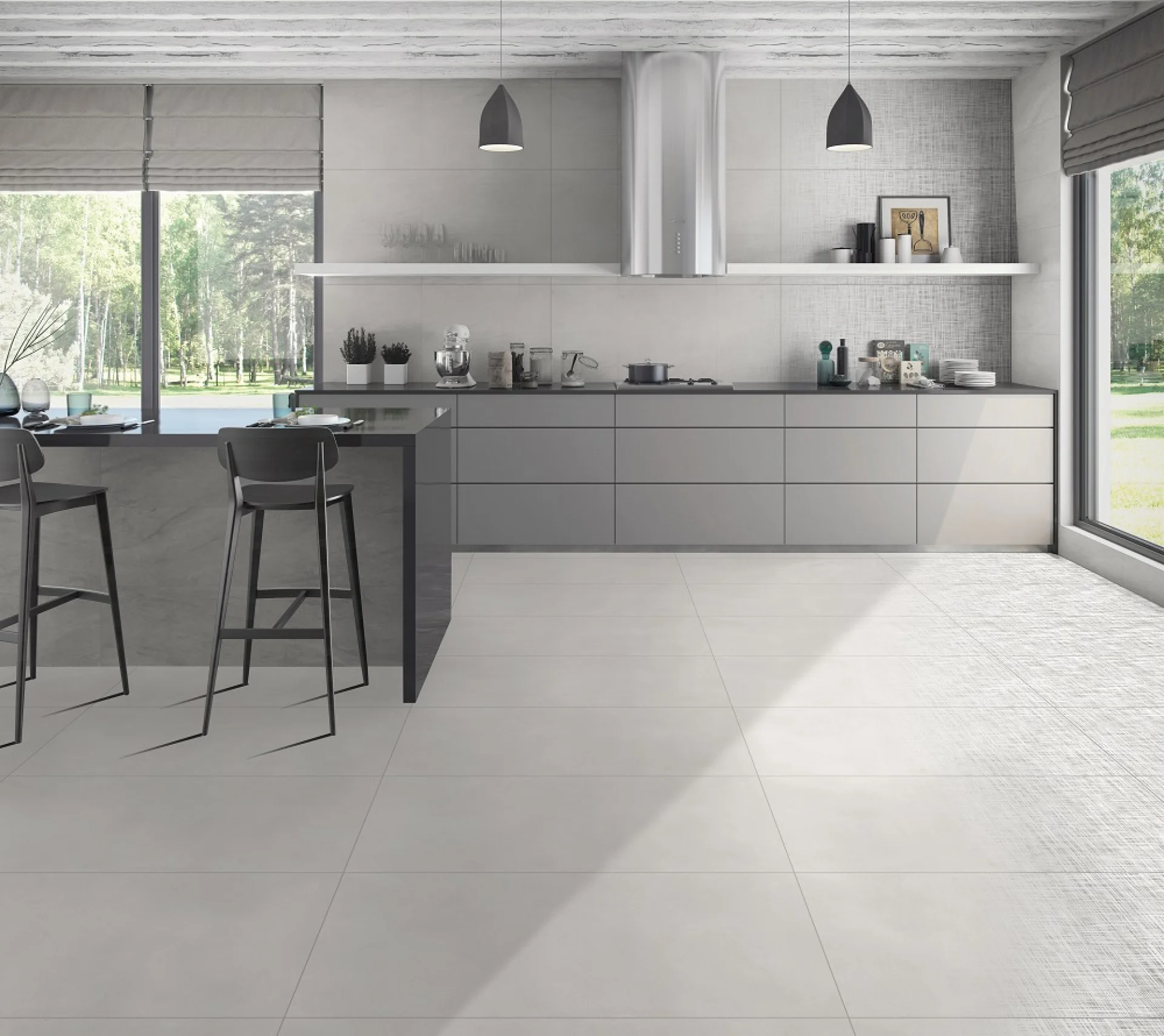 Tonul gri deschis-albicios aduce luminozitate și un aer sofisticat spațiilor, oferind senzația de suprafață continuă.