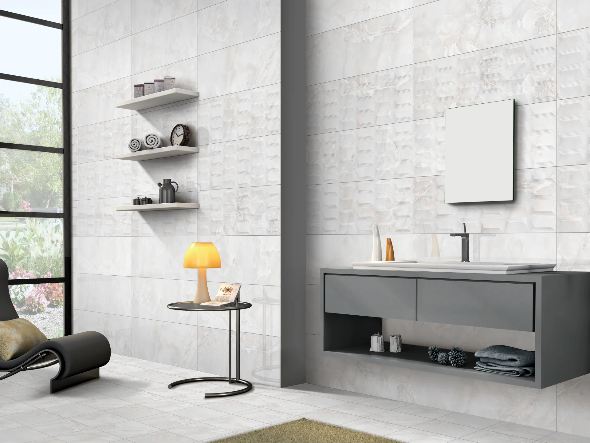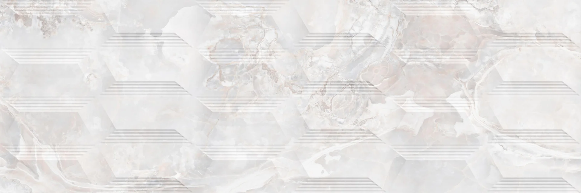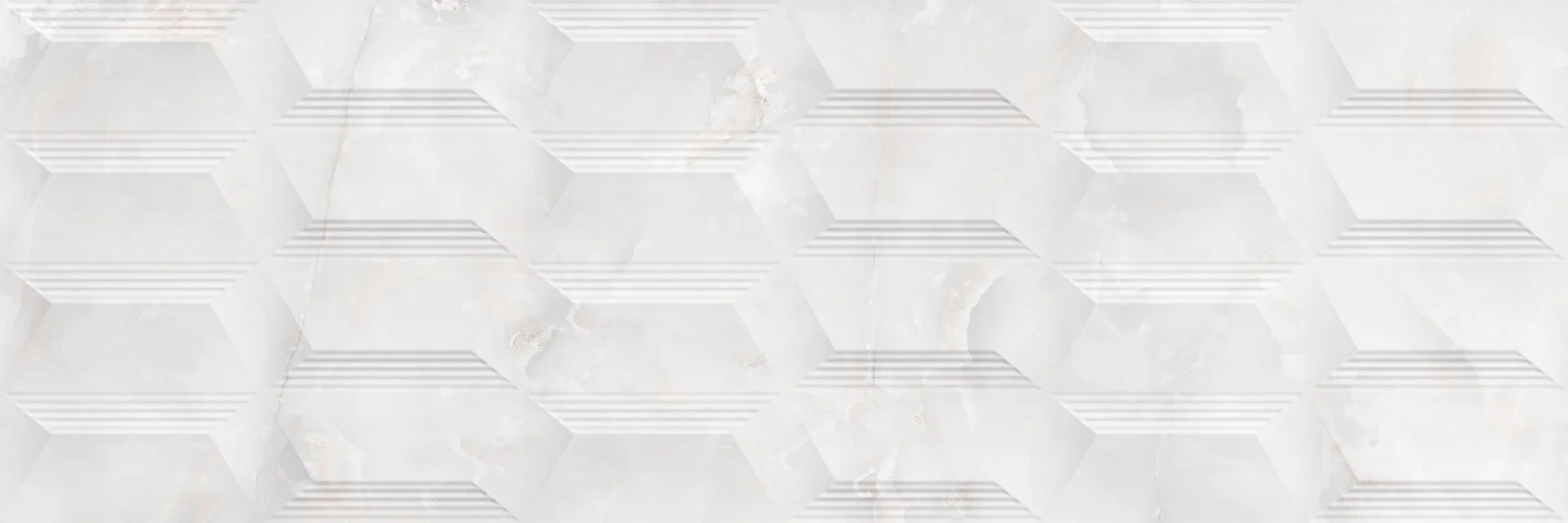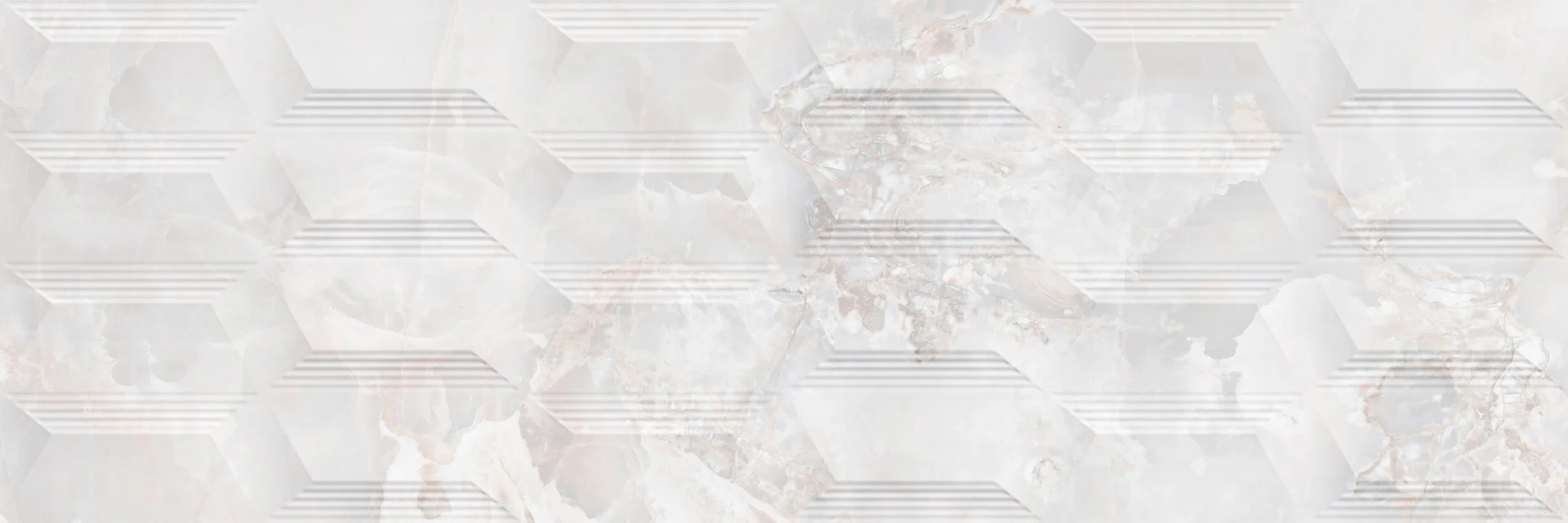 Faianța ROZAR ONYX GRAY HL 03 combină eleganța onixului cu un model decorativ în relief, în forme fine, evidențiate prin texturi și linii orizontale.