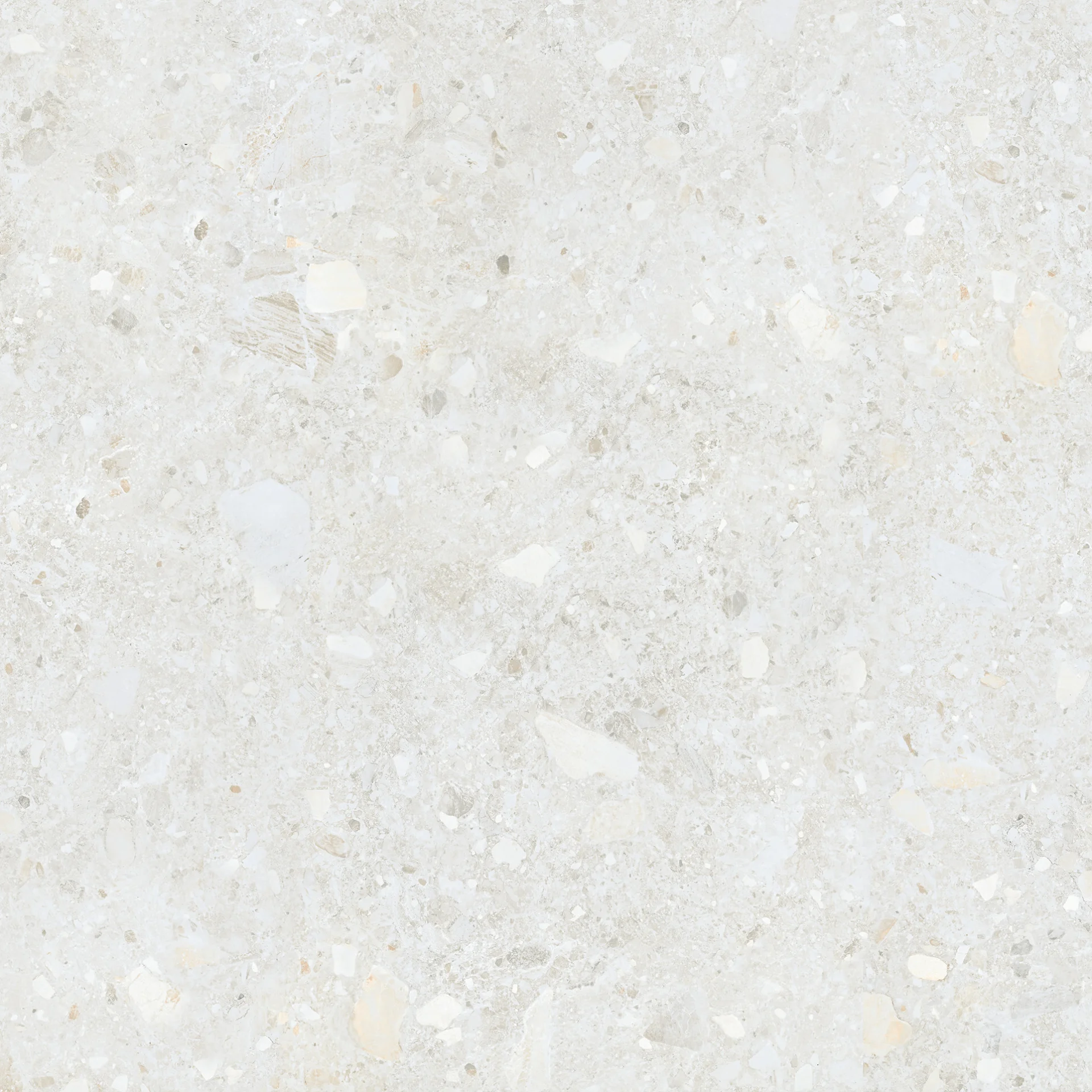 Gresia Vivanta Ceppo Bianco impresionează prin eleganța naturală și textura inspirată din piatra de tip terrazzo, reinterpretată într-un design modern. Nuanțele calde de crem/bej, completate de fragmente decorative specifice aspectului terrazzo, în dimensiuni diferite și culori armonios amestecate, creează un aspect rafinat și luminos, potrivit pentru o varietate de stiluri de amenajare.