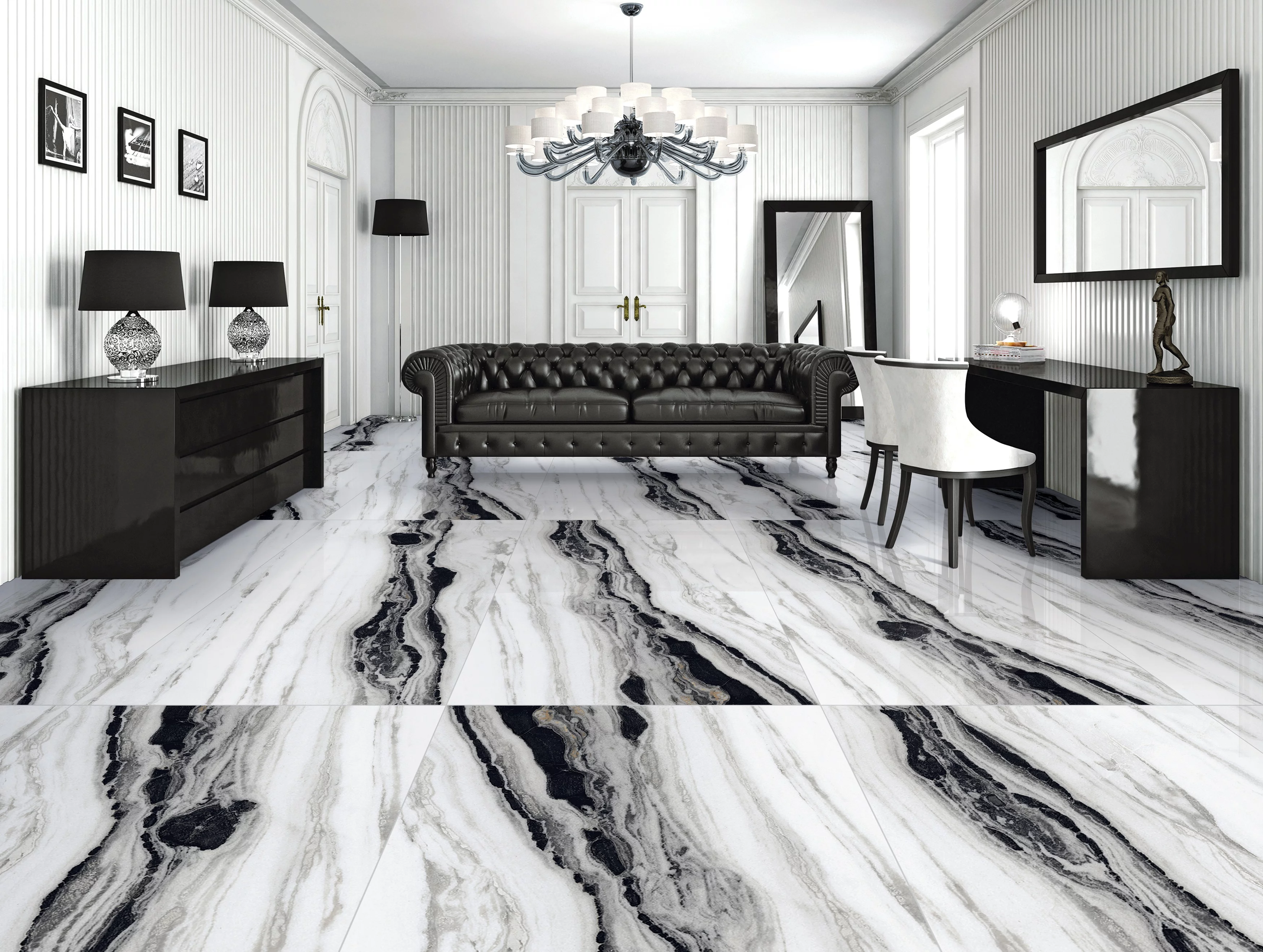 PORTELANATA, GLAZURATA, RECTIFICATA, FINISAJ SUPER LUCIOS HIGH GLOSSY RANDOM 3, 9MM, A.A 0.13%, PEI IV, designul placilor nu are continuitate