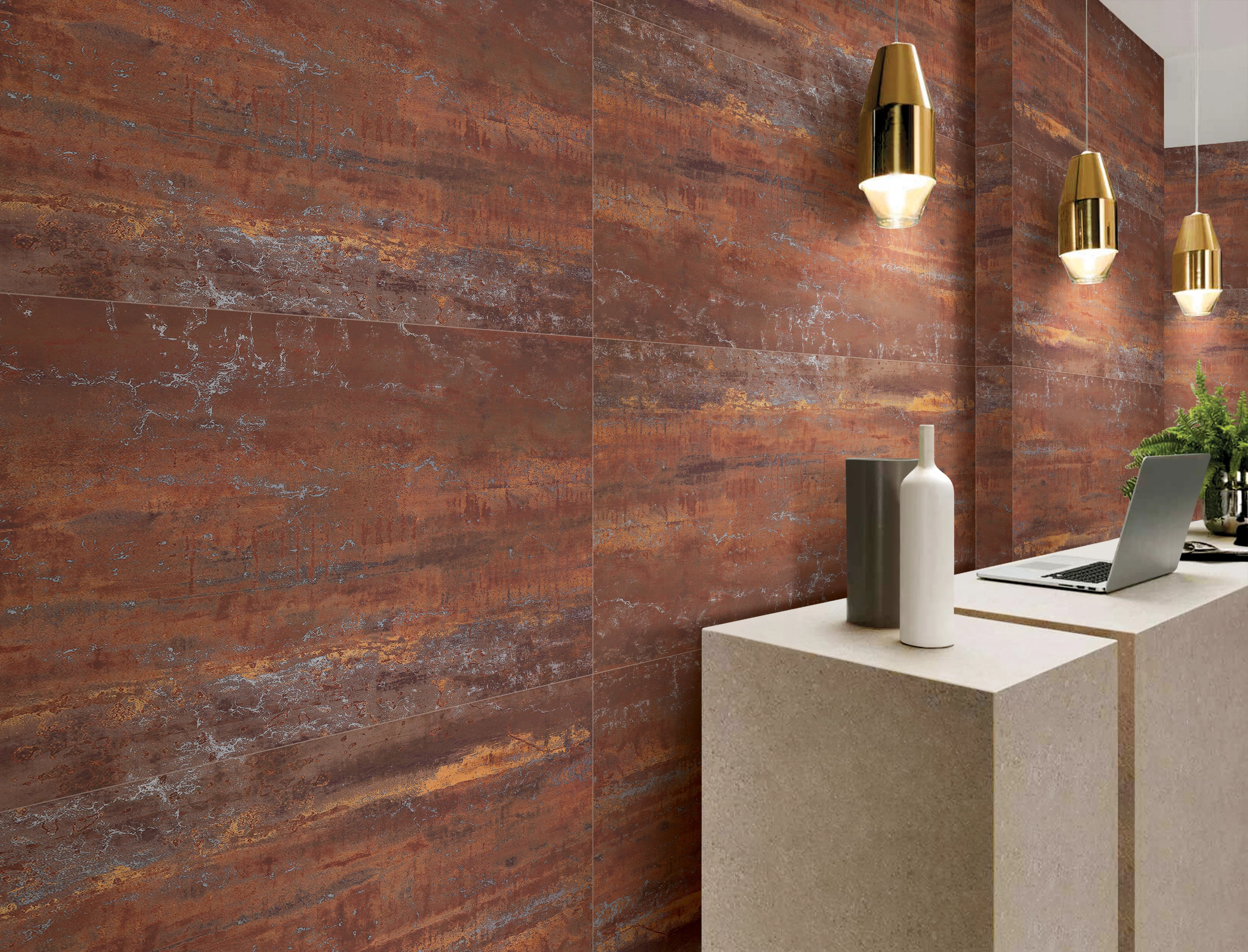 GRESIE COSMOS BRONZE GRANDE aduce un design unic, inspirat de texturile metalelor oxidate, în nuanțe de bronz, ruginiu și tonuri pământii cu reflexii subtile metalice.
