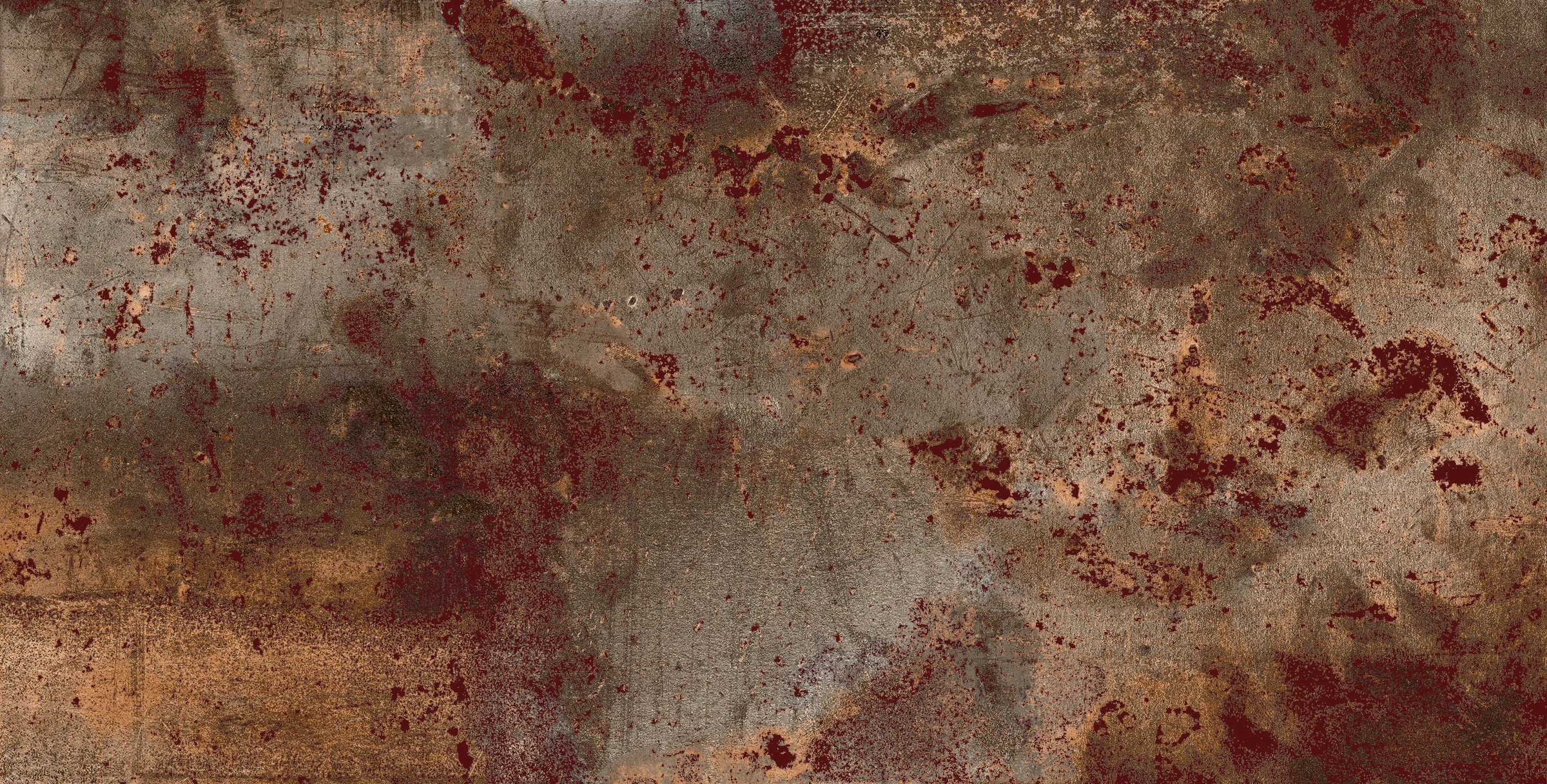 GRESIE PLUTONIC EARTH GRANDE - 60X120 cm, porțelanată, finisaj mat metalizat în tonuri de bronz și roșu-oxid, cu design industrial, ideală pentru spații interioare și exterioare moderne.