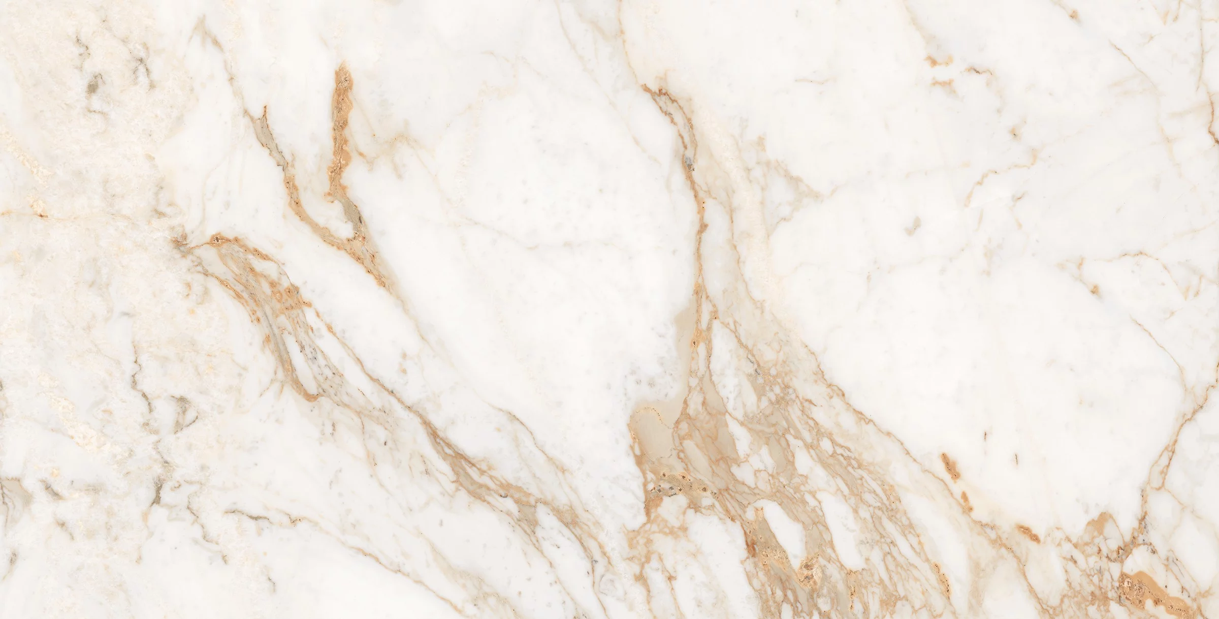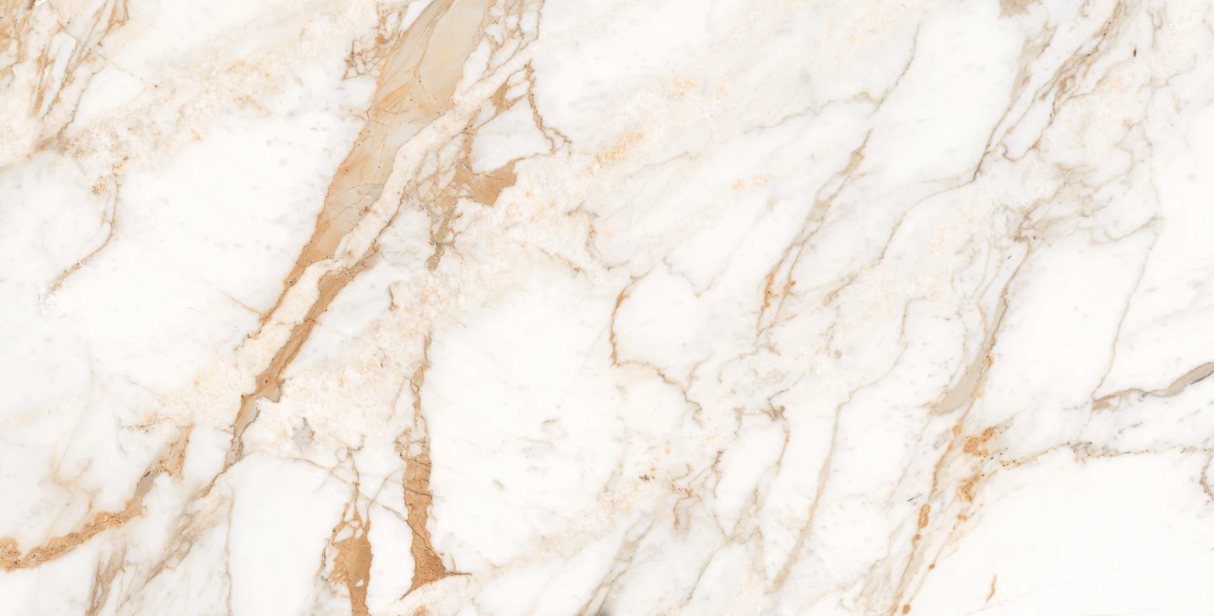 GRESIE CALACATTA GOLD GRANDE - 60X120 cm, porțelanată, lucioasă, finisaj marmură Calacatta cu inserții aurii și nuanțe calde de bej, ideală pentru spații interioare elegante și luxoase.