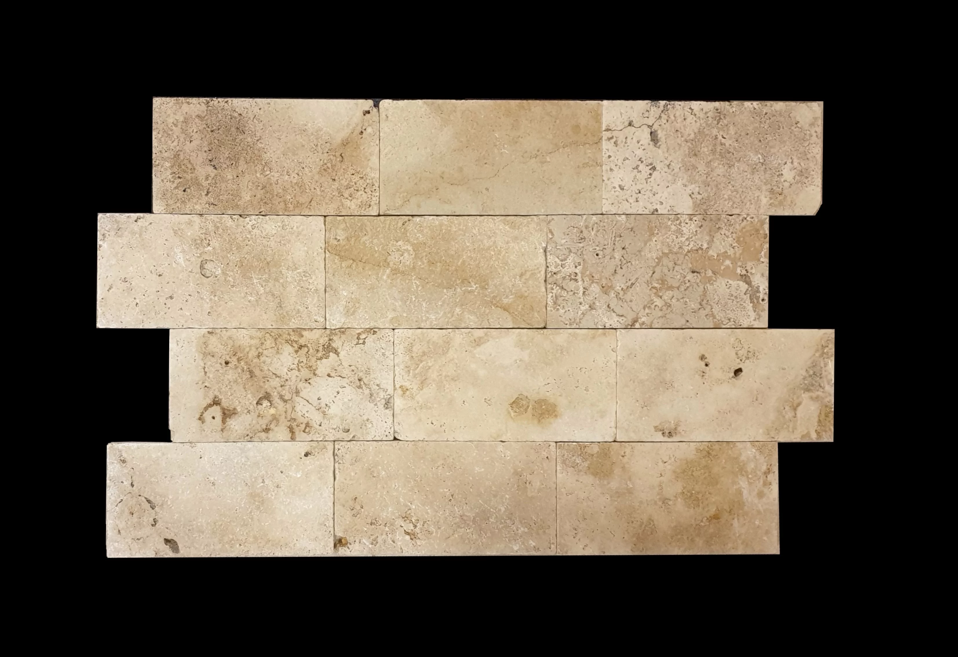 TRAVERTIN CLASSIC MIX - 15.2X30.5X1 cm, finisaj tumbled (antichizat), neșlefuit și nechituit, în nuanțe naturale de crem și bej, ideal pentru proiecte rustice și mediteraneene.