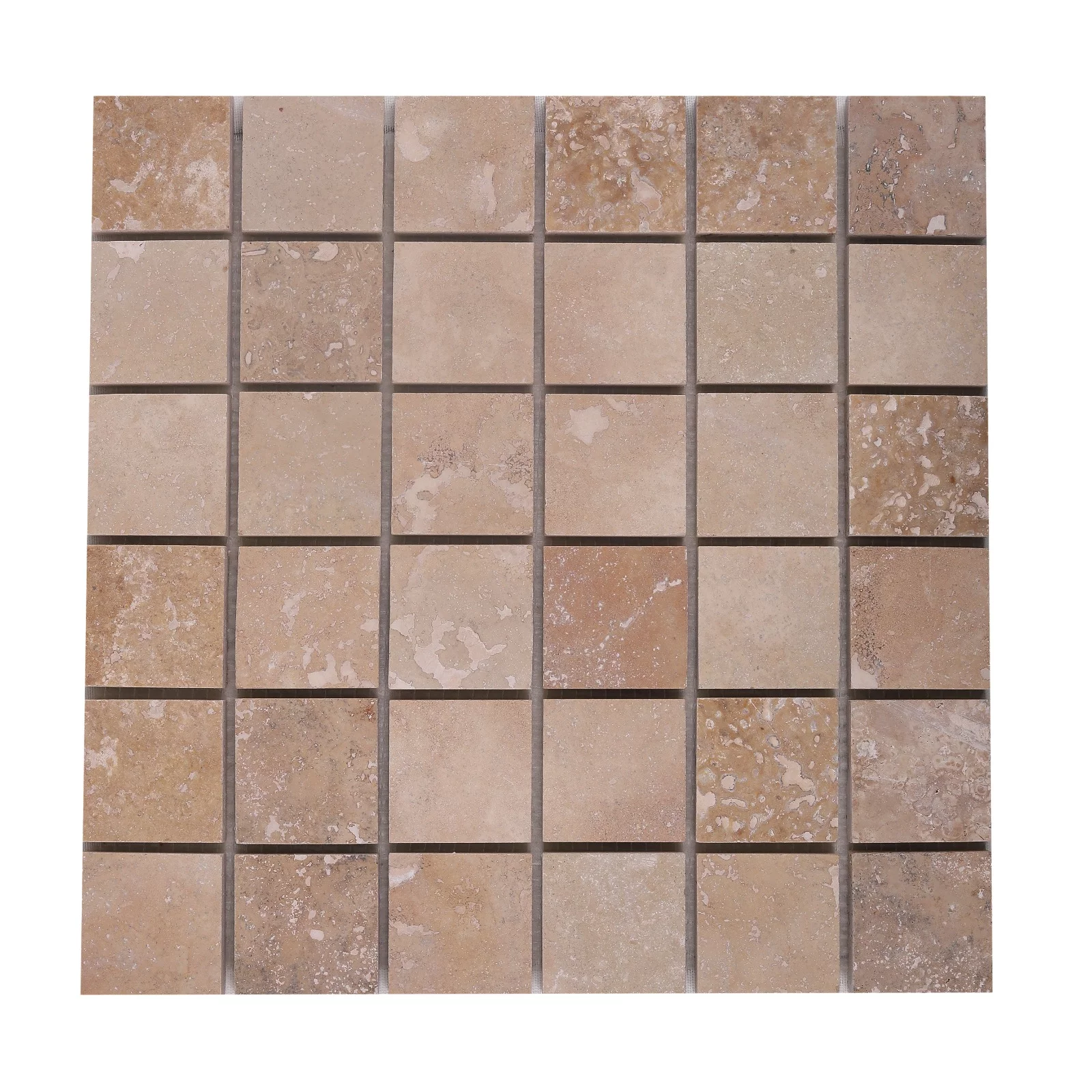 MOZAIC DIN TRAVERTIN RUSTIC - 30.5x30.5 cm, grosime 1 cm, bej, finisaj mat, chituit, montat pe plasă, ideal pentru spații interioare elegante și naturale.