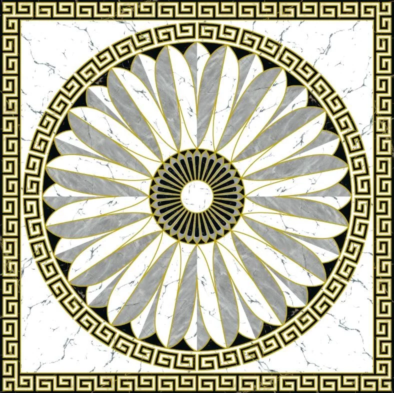 Covorul ceramic FC-66PHP14-2105 impresionează prin simetria și eleganța sa, oferind un design floral radial care domină vizual spațiul.