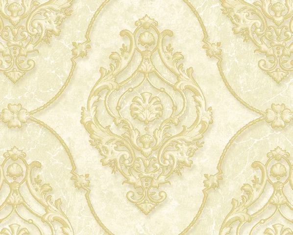 TAPET PVC PISTA 85001-1 - 106X1560 cm (16.54 mp/rola), cu model baroc elegant în nuanțe de crem și auriu pastel. Un design clasic, luminos și sofisticat, ideal pentru interioare rafinate și spații ample.